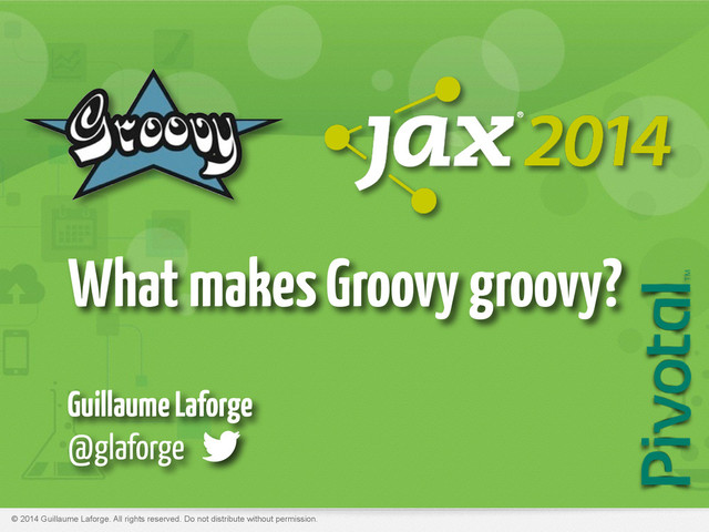 • Scripting tasks, build automation • More readable and expressive tests • Extension points for customizing / configuring apps • Full blown apps – for the web with Grails, Ratpack, Gaelyk – for web reactive programming with Reactor – for desktop with Griffon 101