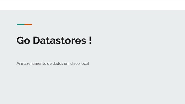 ➔ Como os dados são organizados em disco: diretório ou um arquivo ➔ Qual o schema: relacional ou K/V ? ➔ Como fazer queries ? ➔ Nativo em Go ou precisa de uma biblioteca cliente ? ➔ Otimizações para casos específicos (melhor em leitura ou escrita) Features