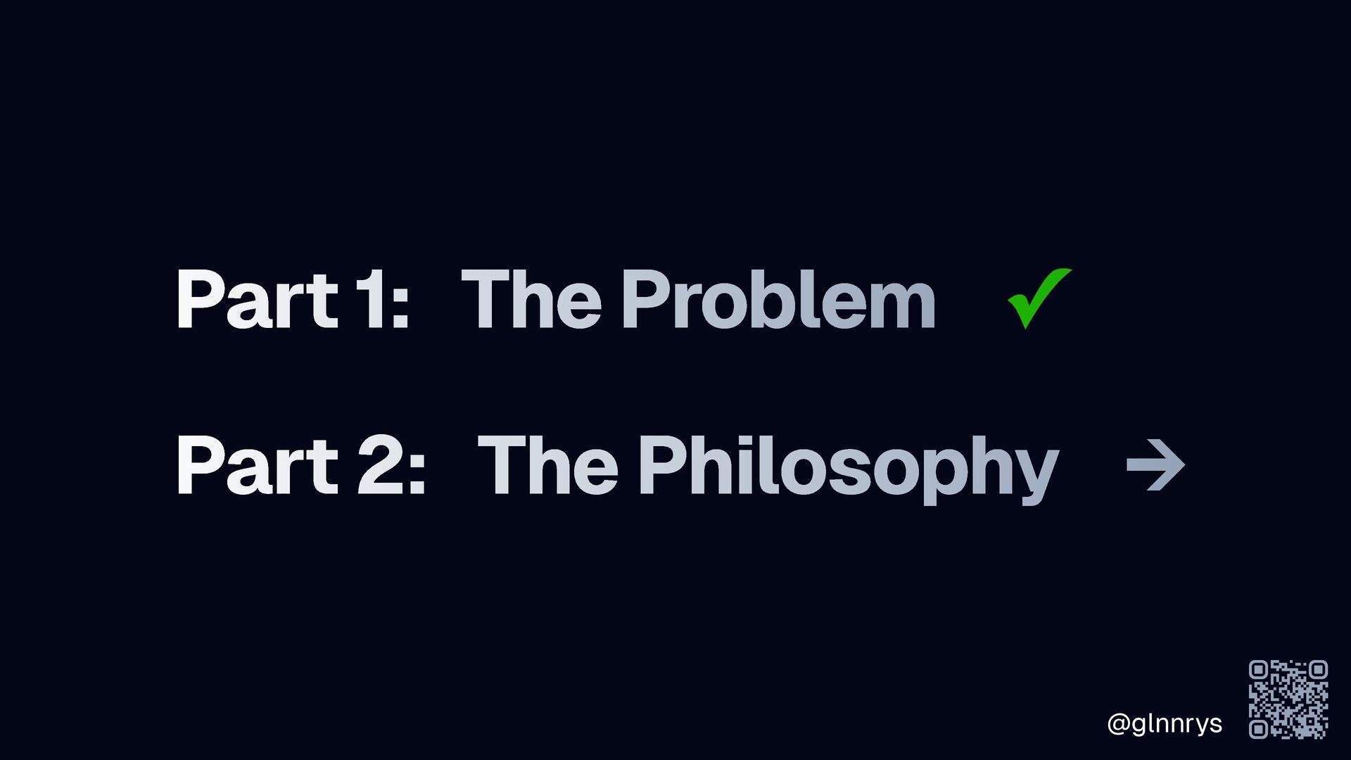 @glnnrys Part 1: The Problem ✓ Part 2: The Philosophy
