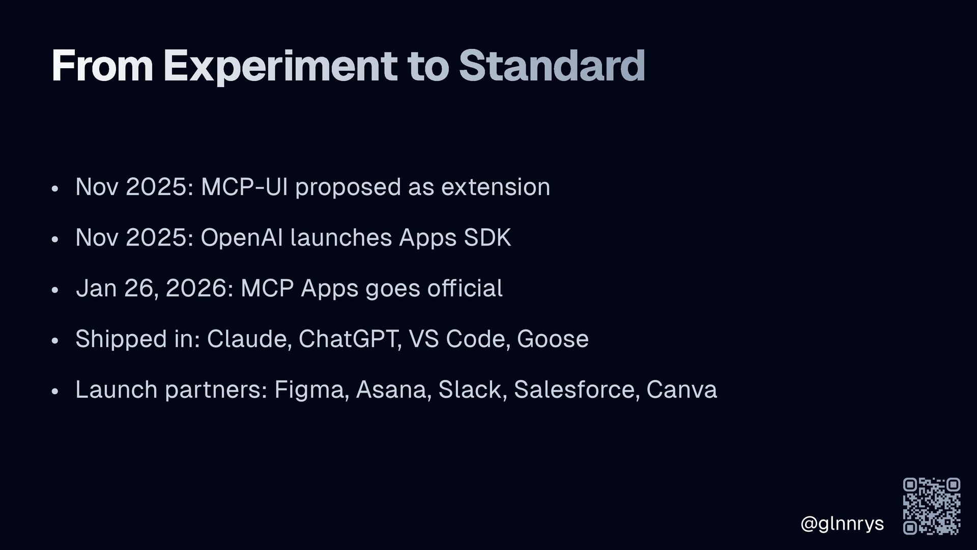 @glnnrys From Experiment to Standard • Nov 2025: MCP-UI proposed