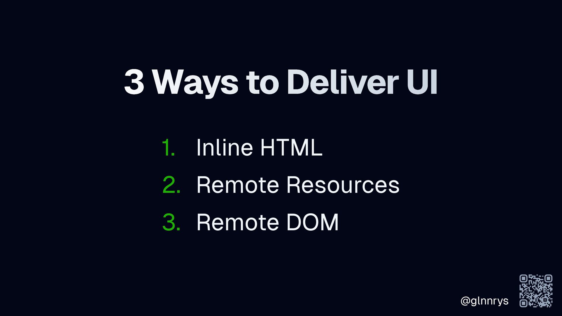 @glnnrys 3 Ways to Deliver UI 1. Inline HTML 2.