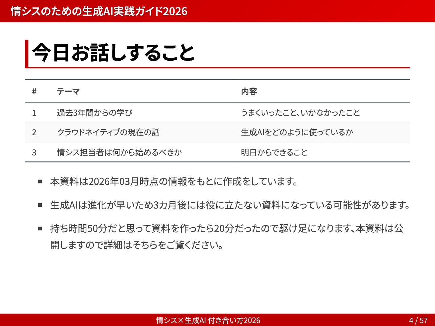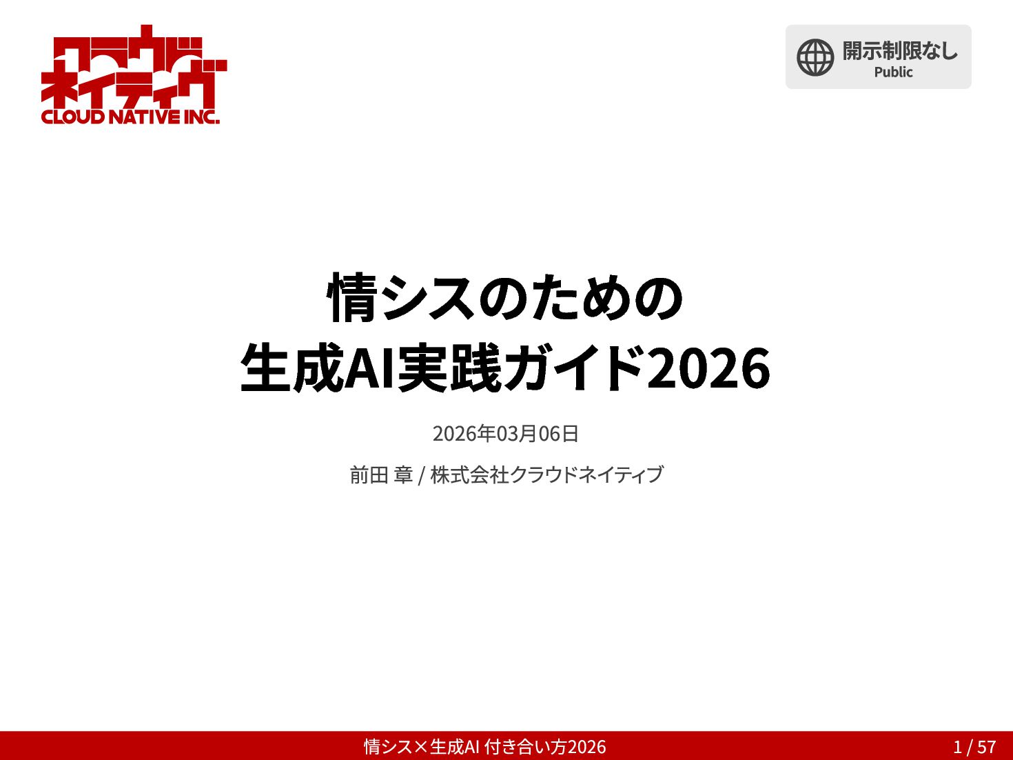 2026年03月06日に開催された「情シスが知っておくべき生成AIとの付き合い方」 での発表資料です