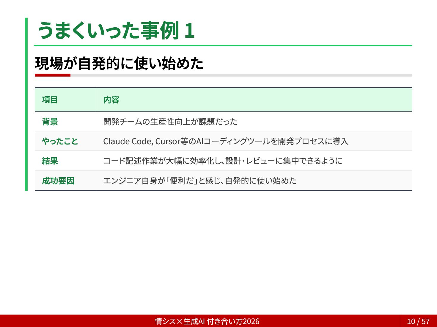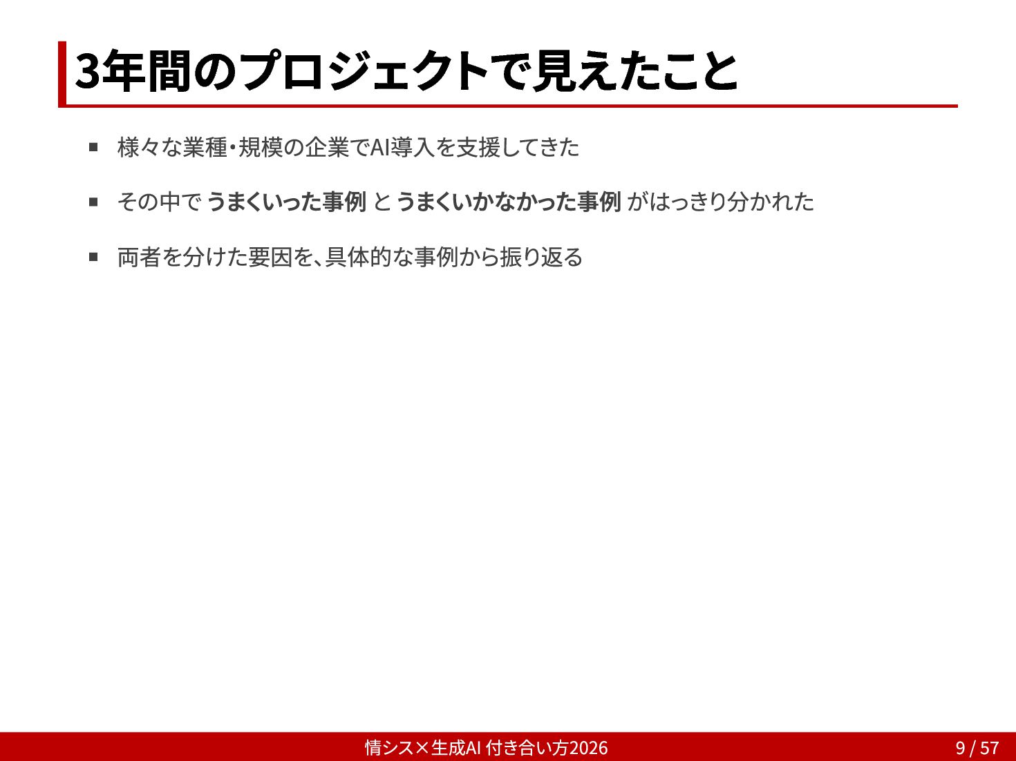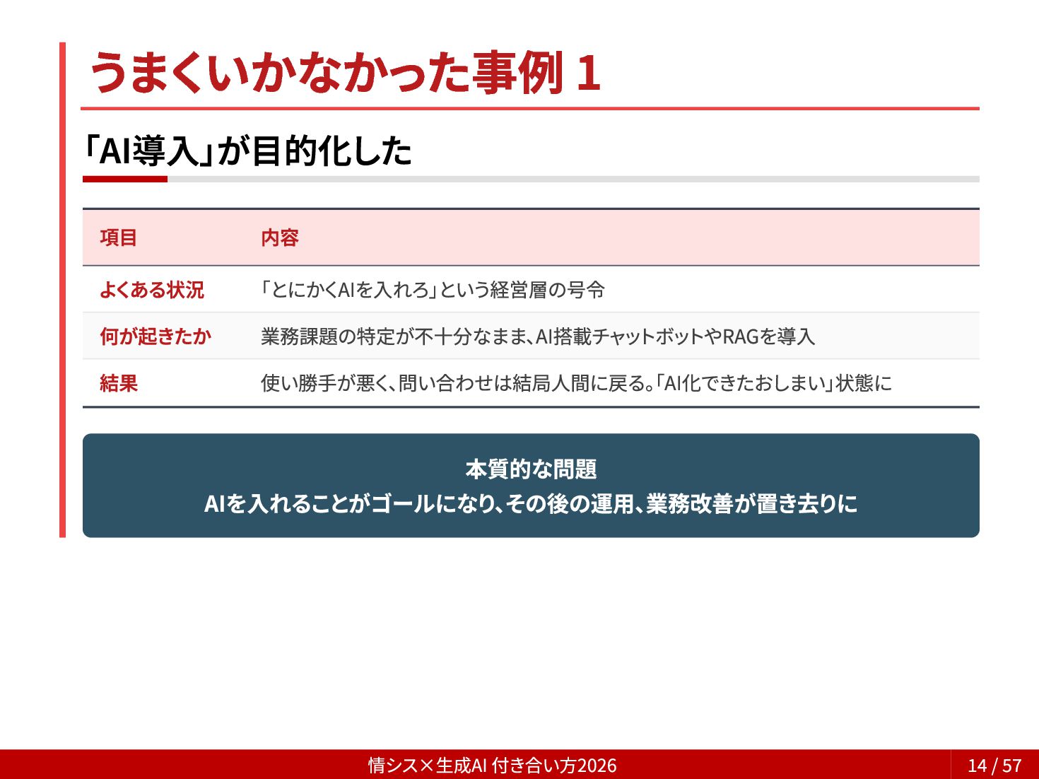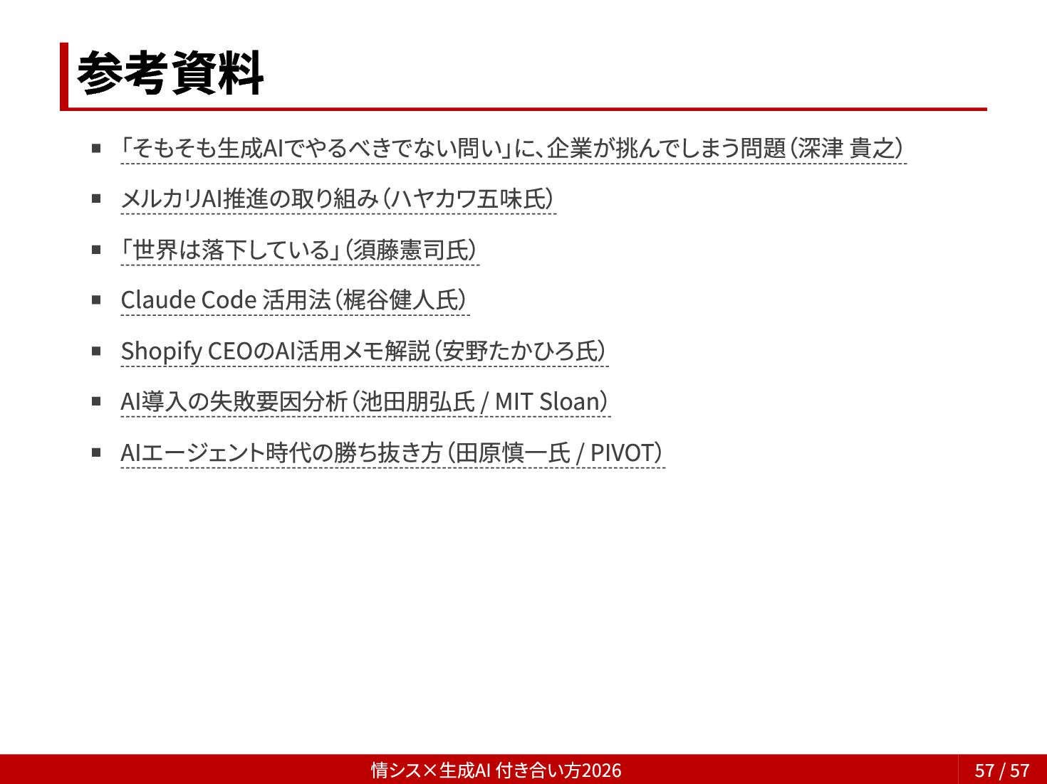 - AI導入の失敗要因分析(池田朋弘氏 / MIT Sloan): https://www.youtube.com/watch?v=iWUPlrpUEOU