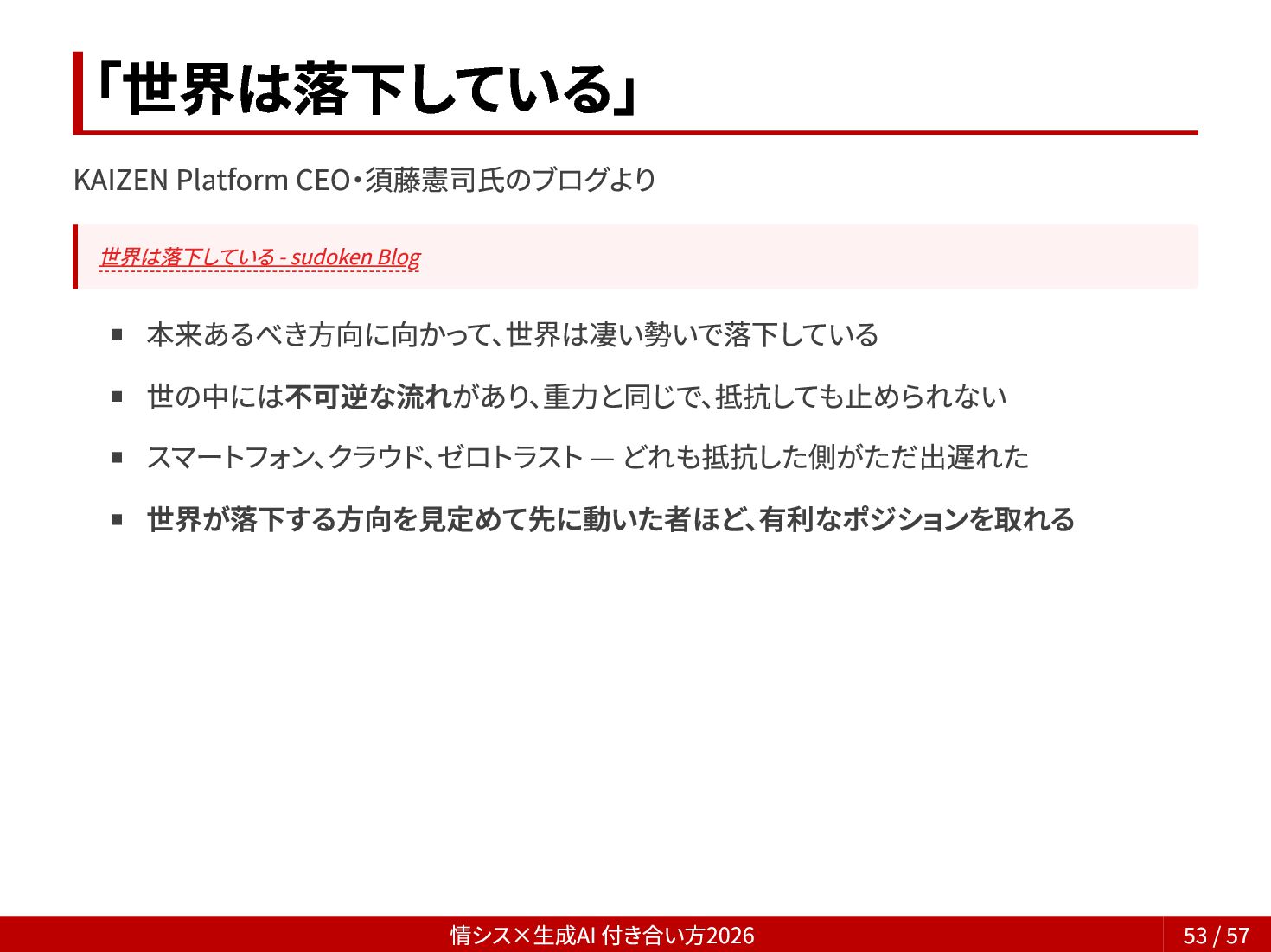 - AIエージェント時代の勝ち抜き方(田原慎一氏 / PIVOT): https://www.youtube.com/watch?v=ZjH8wo1ziws
