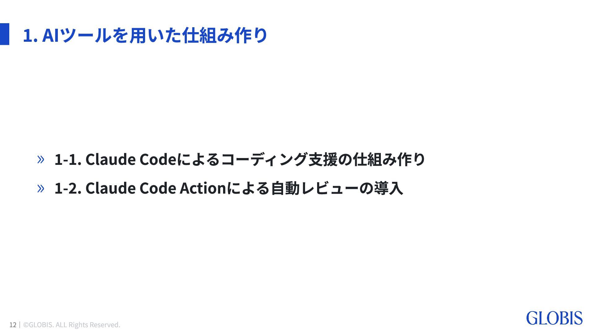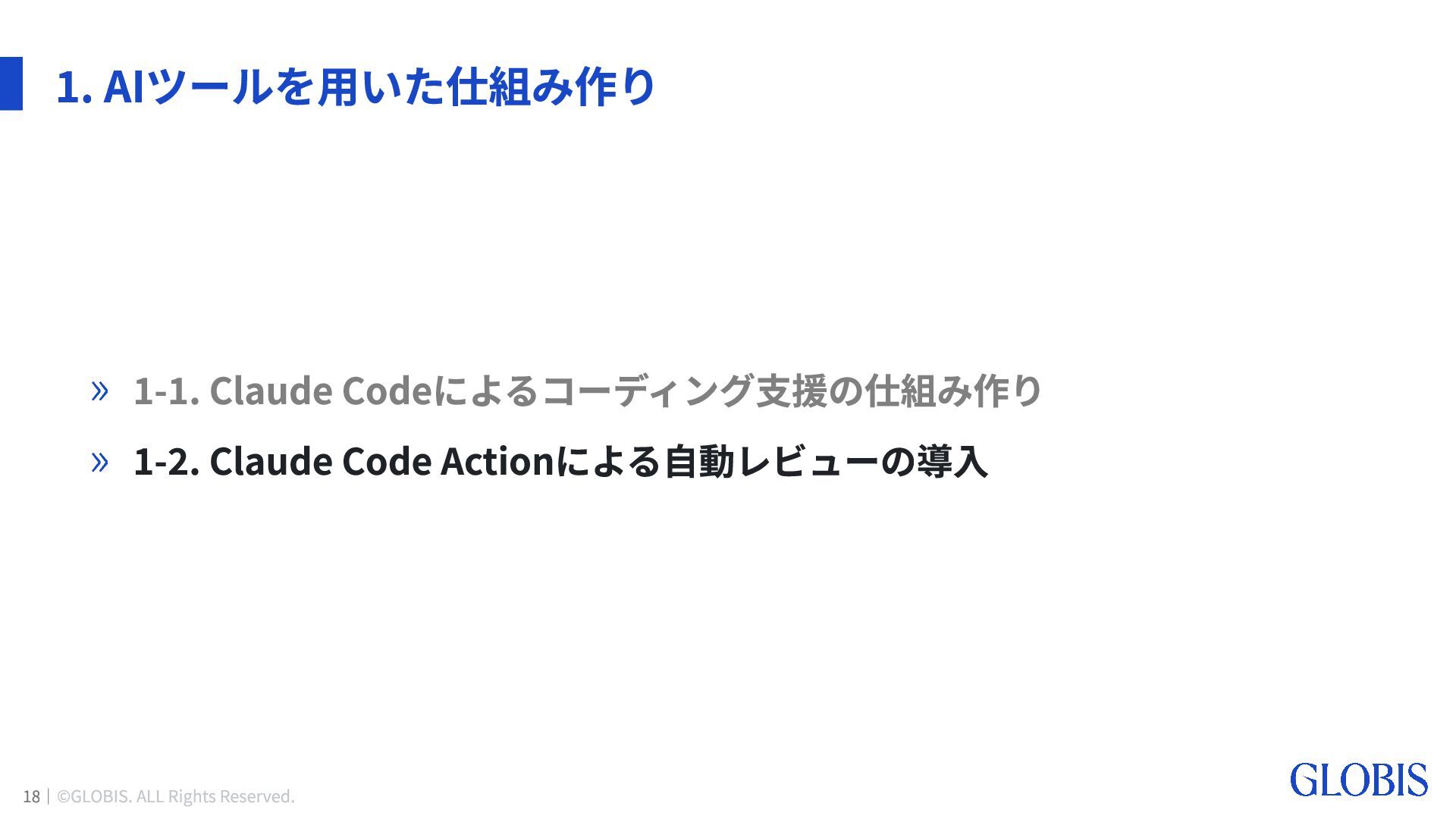1. AIツールを用いた仕組み作り 1-1. Claude Codeによるコーディング支援の仕組み作り » 1-2. Claude Code Actionによる自動レビューの導入