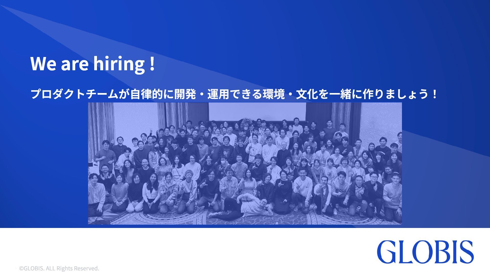 We are hiring ! プロダクトチームが自律的に開発・運用できる環境・文化を一緒に作りましょう! ©GLOBIS. ALL Rights Reserved.