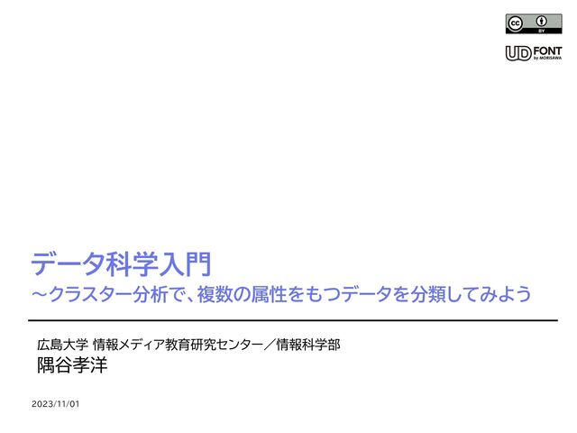 データ科学入門 〜クラスター分析で、複数の属性をもつデータを分類してみよう 広島大学 情報メディア教育研究センター/情報科学部 隅谷孝洋 2023/11/01