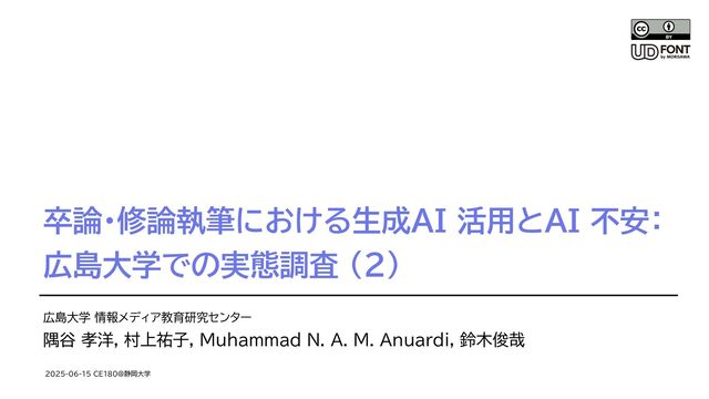 英語から日本語への翻訳 先行研究論文の要約など理解… アイデア出し、壁打ちなど構想… 専門的知識の理解の支援 日本語から英語への翻訳 論文・文章の骨組み作り 関連資料・サイトの要約など理… GoogleなどのWeb検索の… データ分析の支援 文章生成 図表の生成 その他 プレゼン資料の生成 学部 大学院 0.00 0.20 0.40 0.60 文章校正 プログラムの生成 英語から日本語への翻訳 先行研究論文の要約など理解… アイデア出し、壁打ちなど構想… 専門的知識の理解の支援 日本語から英語への翻訳 論文・文章の骨組み作り 関連資料・サイトの要約など理… GoogleなどのWeb検索の… データ分析の支援 文章生成 図表の生成 その他 プレゼン資料の生成 学部 大学院 2023年度 2024年度