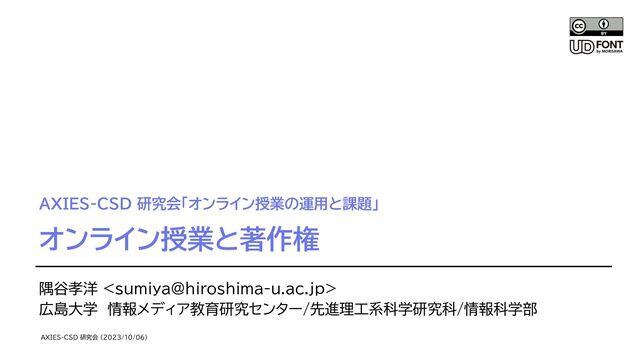 > 広島大学 情報メディア教育研究センター/先進理工系科学研究科/情報科学部 AXIES-CSD 研究会 (2023/10/06)