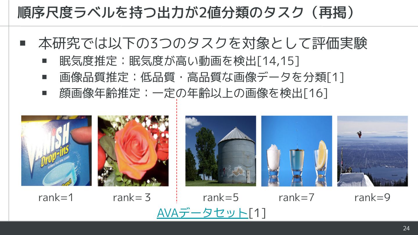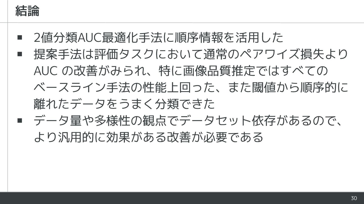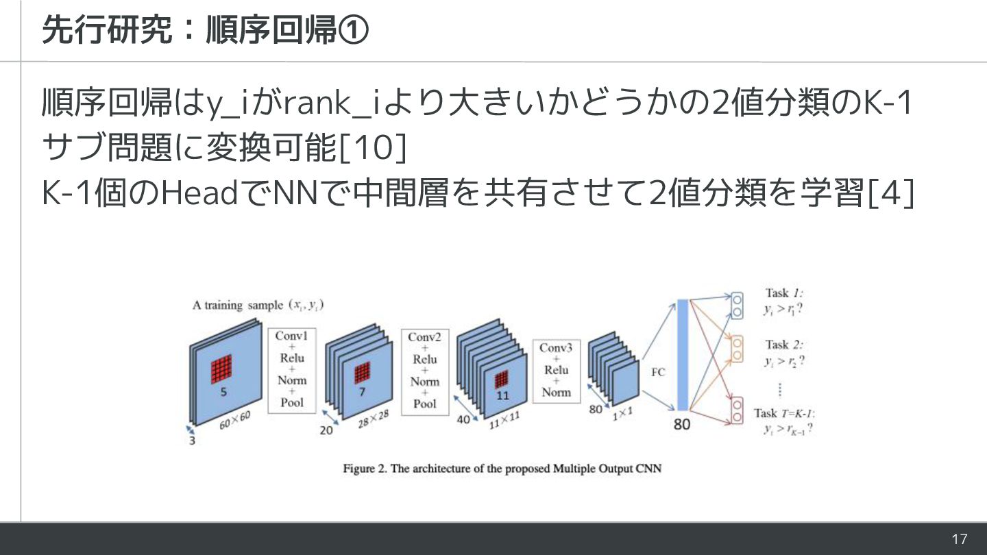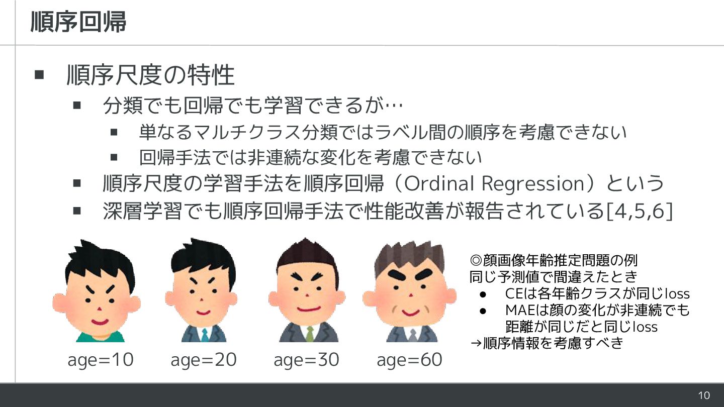 database for aesthetic visual analysis, 2012 IEEE conference on computer vision and pattern recognition, IEEE, pp. 2408–2415 (2012). pdf [2]Cortes, C. and Mohri, M.: AUC Optimization vs. Error Rate Minimization, Advances in Neural Information Processing Systems (Thrun, S., Saul, L. and Sch¨olkopf, B., eds.), Vol. 16, MIT Press (2003). pdf [3]Yang, T. and Ying, Y.: AUC maximization in the era of big data and AI: A survey, ACM computing surveys, Vol. 55, No. 8, pp. 1–37 (2022). pdf [4]Niu, Z., Zhou, M., Wang, L., Gao, X. and Hua, G.: Ordinal regression with multiple output cnn for age estimation, Proceedings of the IEEE conference on computer vision and pattern recognition, pp. 4920–4928 (2016). pdf [5]Cao, W., Mirjalili, V. and Raschka, S.: Rank consistent ordinal regression for neural networks with application to age estimation, Pattern Recognition Letters, Vol. 140, pp. 325–331 (2020). pdf [6]Diaz, R. and Marathe, A.: Soft labels for ordinal regression, Proceedings of the IEEE/CVF conference on computer vision and pattern recognition, pp. 4738–4747 (2019). pdf [7]Sulam, J., Ben-Ari, R. and Kisilev, P.: Maximizing AUC with Deep Learning for Classification of Imbalanced Mammogram Datasets., VCBM, pp. 131–135 (2017). pdf [8]Ying, Y., Wen, L. and Lyu, S.: Stochastic online AUC maximization, Advances in neural information processing systems, Vol. 29 (2016). pdf [9]Yuan, Z., Yan, Y., Sonka, M. and Yang, T.: Large-scale robust deep auc maximization: A new surrogate loss and empirical studies on medical image classification, Proceedings of the IEEE/CVF International Conference on Computer Vision, pp. 3040–3049 (2021). pdf 参考文献① 32