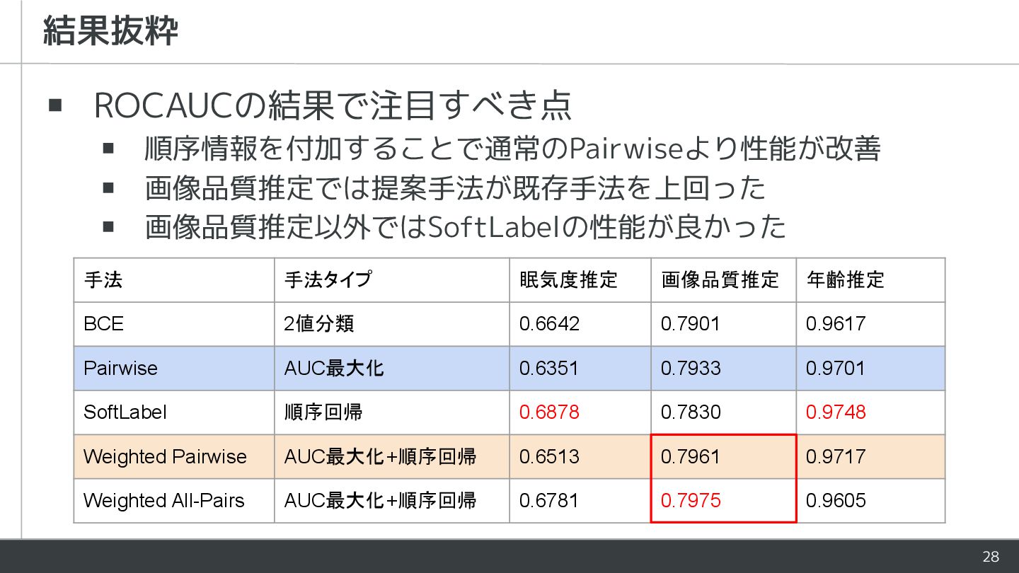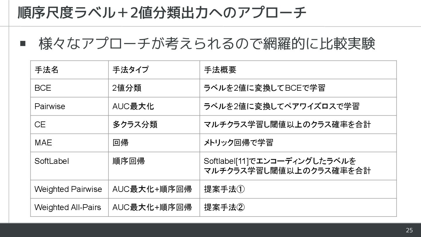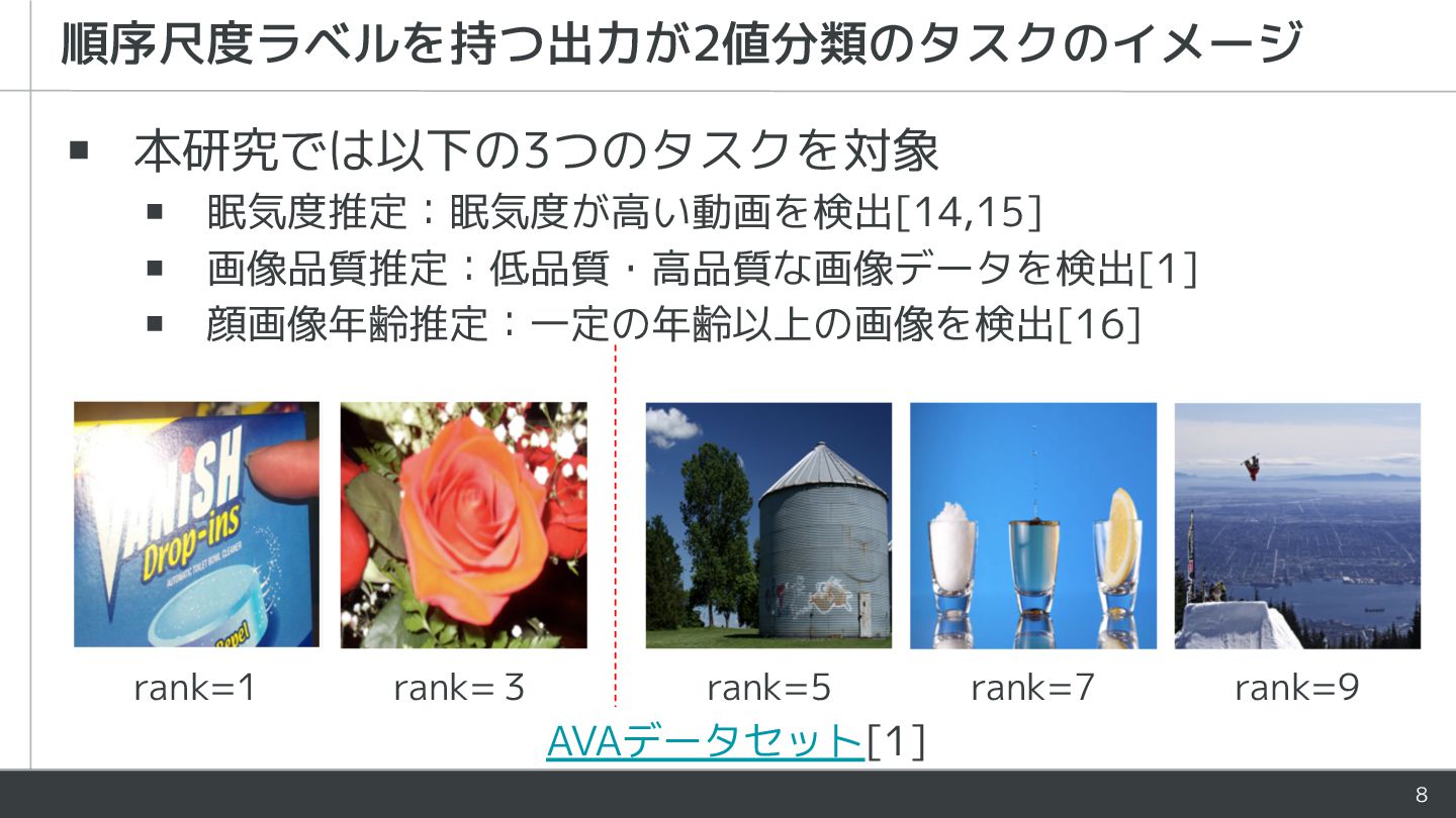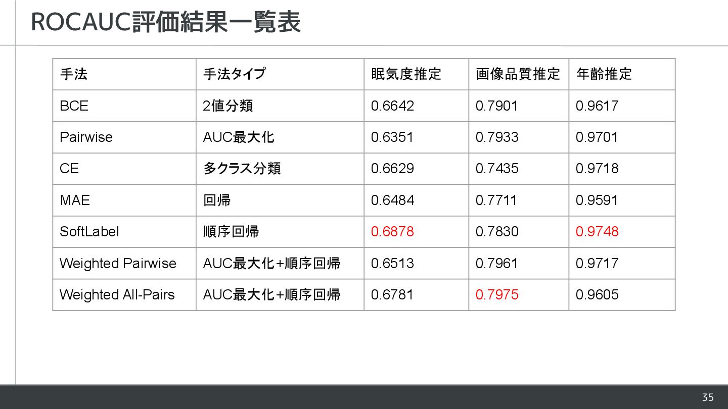 database for aesthetic visual analysis, 2012 IEEE conference on computer vision and pattern recognition, IEEE, pp. 2408–2415 (2012). pdf [2]Cortes, C. and Mohri, M.: AUC Optimization vs. Error Rate Minimization, Advances in Neural Information Processing Systems (Thrun, S., Saul, L. and Sch¨olkopf, B., eds.), Vol. 16, MIT Press (2003). pdf [3]Yang, T. and Ying, Y.: AUC maximization in the era of big data and AI: A survey, ACM computing surveys, Vol. 55, No. 8, pp. 1–37 (2022). pdf [4]Niu, Z., Zhou, M., Wang, L., Gao, X. and Hua, G.: Ordinal regression with multiple output cnn for age estimation, Proceedings of the IEEE conference on computer vision and pattern recognition, pp. 4920–4928 (2016). pdf [5]Cao, W., Mirjalili, V. and Raschka, S.: Rank consistent ordinal regression for neural networks with application to age estimation, Pattern Recognition Letters, Vol. 140, pp. 325–331 (2020). pdf [6]Diaz, R. and Marathe, A.: Soft labels for ordinal regression, Proceedings of the IEEE/CVF conference on computer vision and pattern recognition, pp. 4738–4747 (2019). pdf [7]Sulam, J., Ben-Ari, R. and Kisilev, P.: Maximizing AUC with Deep Learning for Classification of Imbalanced Mammogram Datasets., VCBM, pp. 131–135 (2017). pdf [8]Ying, Y., Wen, L. and Lyu, S.: Stochastic online AUC maximization, Advances in neural information processing systems, Vol. 29 (2016). pdf [9]Yuan, Z., Yan, Y., Sonka, M. and Yang, T.: Large-scale robust deep auc maximization: A new surrogate loss and empirical studies on medical image classification, Proceedings of the IEEE/CVF International Conference on Computer Vision, pp. 3040–3049 (2021). pdf 参考文献① 32