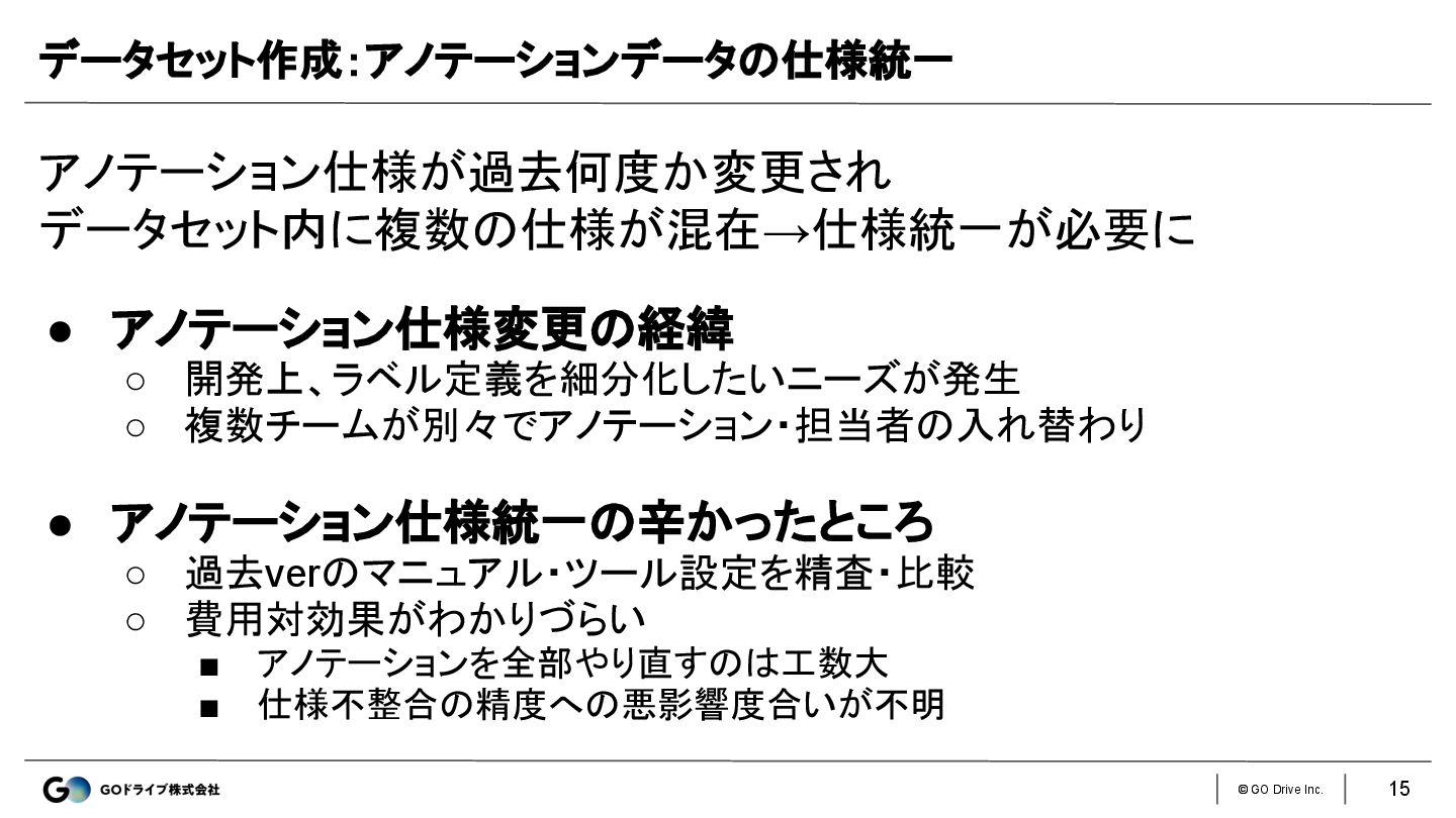 © GO Drive Inc. 15 • アノテーション仕様変更の経緯 ◦ 開発上、ラベル定義を細分化したいニーズが発生 ◦