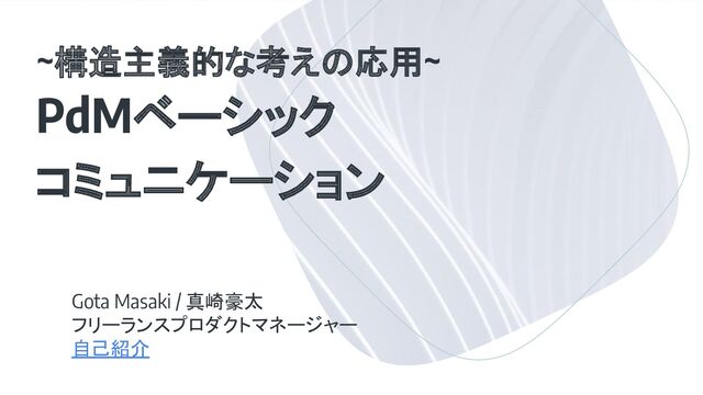 ~構造主義的な考えの応用~ PdMベーシック コミュニケーション Gota Masaki / 真崎豪太 フリーランスプロダクトマネージャー 自己紹介