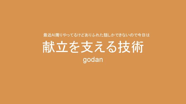 献立を支える技術 godan 最近AI周りやってるけどありふれた話しかできないので今日は