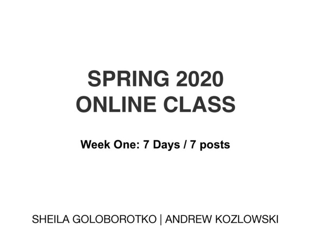 Spring 2020 Online Course Week One was created in response to the Coronavirus university mandate for online classes. This presentation contains a great deal of information and a number of assignments requiring students to get organized, understand the online platform, and post.