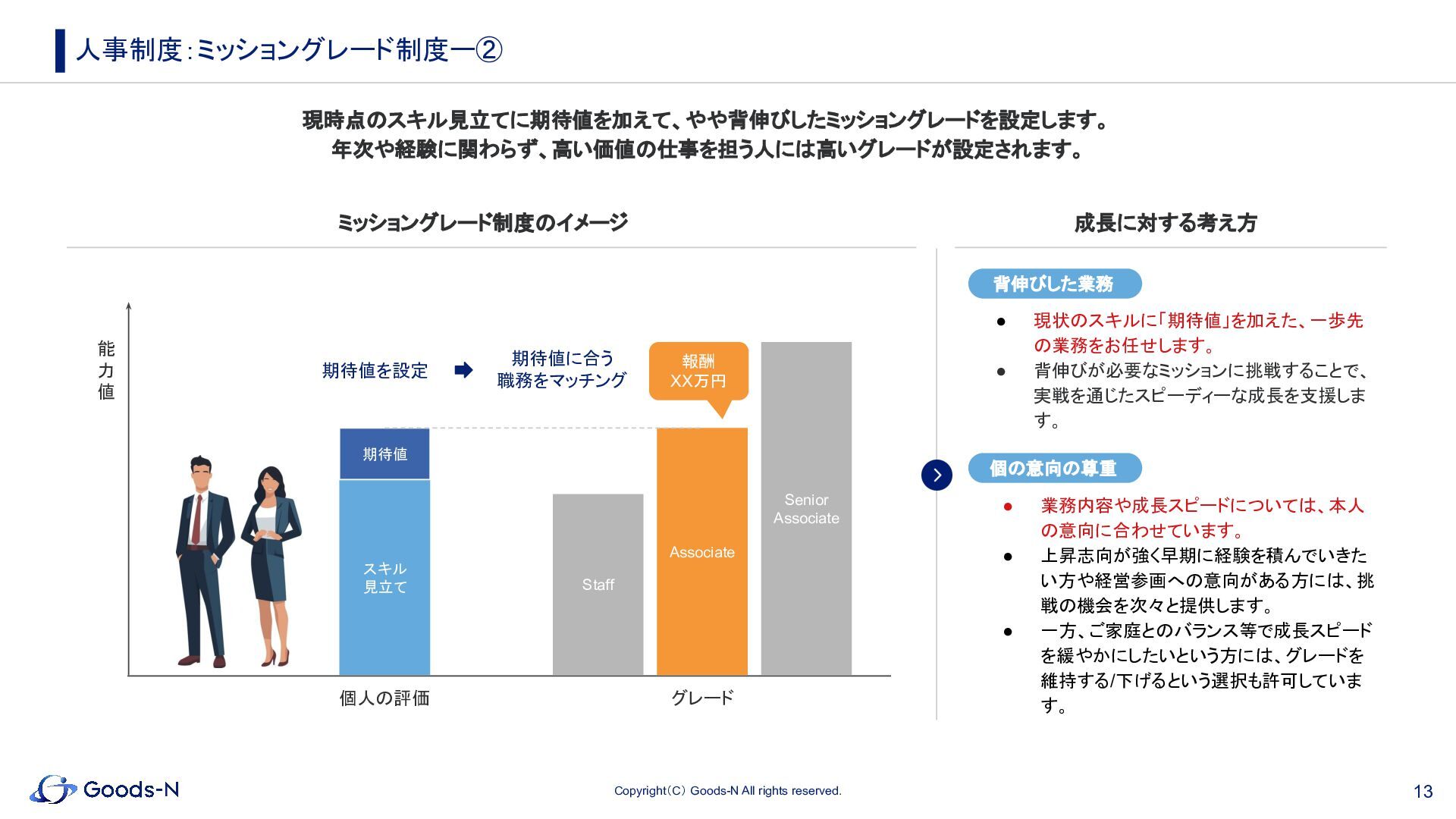 11. 13 Copyright(C) Goods-N All rights reserved. 人事制度:ミッショングレード制度ー② スキル 見立て 期待値