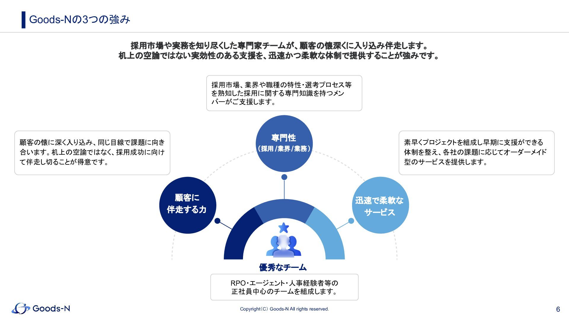 5. 6 Copyright(C) Goods-N All rights reserved. Goods-Nの3つの強み 迅速で柔軟な サービス 優秀なチーム