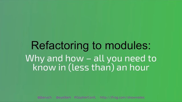 Go modules are here to stay and it’s about time to start modularizing your code. We’re here to help! In this session, you’ll learn why and how to do it by examining a production code successfully refactored to modules.