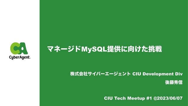 ϚωʔδυMySQLఏڙʹ͚ͨઓ גࣜձࣾαΠόʔΤʔδΣϯτ CIU Development Div ޙ౻ल৴ CIU Tech Meetup #1