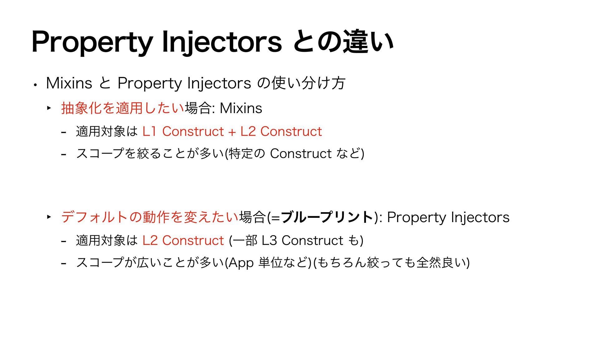 1SPQFSUZ*OKFDUPSTͱͷҧ͍ w .JYJOTͱ1SPQFSUZ*OKFDUPSTͷ͍͚ํ ‣ நԽΛద༻͍ͨ͠߹.JYJOT ద༻ର-$POTUSVDU -$POTUSVDU είʔϓΛߜΔ͜ͱ͕ଟ͍
