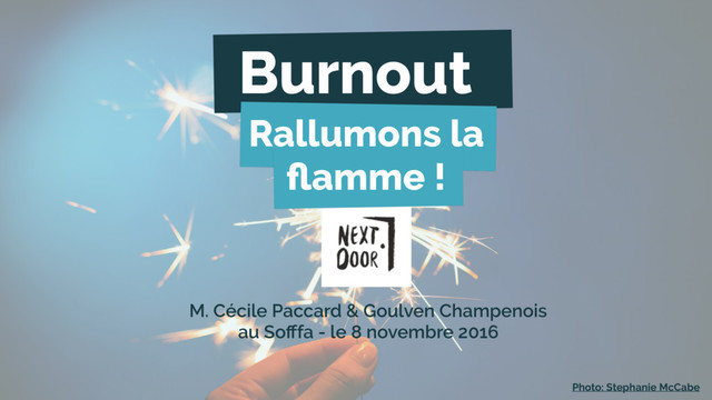 Support visuel de l'intervention "burnout, auto-hypnose et méditation pleine conscience" organisée par Next Door www.nxtdr.fr au Sofffa à Lyon, le 8 novembre 2016