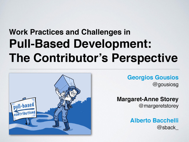 for merging Untangle code changes Analyze impact of changes Improve awareness & communication Implications for researchers Recommendations for contributors Minimize friction Maximize awareness Build a solid profile Recommendations for contributors