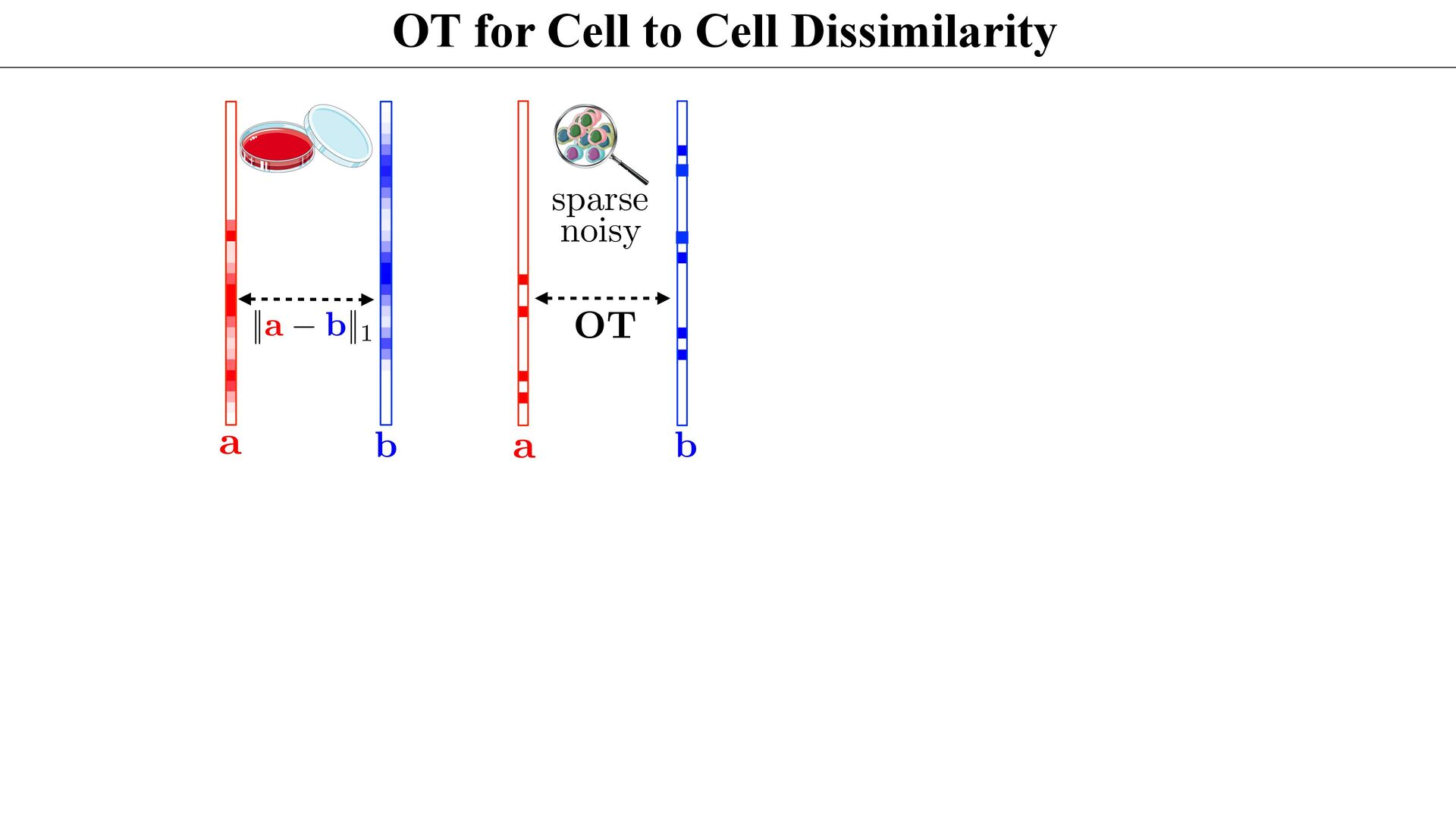many cells (bulk omics) • Today, we can measure omics at the single cell level1. 2 carelli et al. 2018 2Lähnemann et al. 2020 Single-cell profiling uncovers cellular heterogeneity • Until recently, samples contained many cells (bulk omics) • Today, we can measure omics at the single cell level1. 2 1Mincarelli et al. 2018 2Lähnemann et al. 2020 <latexit sha1_base64="8h9qfn6MXuBvKOcg4p0NkYUZouc=">AAACx3icjVHLTsJAFD3UF+ILdemmkZi4Ii0x6pLgRneYCJIgMe0wwITSNu2USIgLf8Ct/pnxD/QvvDMOiUqMTtP2zLn3nJl7rx8HIpWO85qzFhaXllfyq4W19Y3NreL2TjONsoTxBouCKGn5XsoDEfKGFDLgrTjh3sgP+LU/PFPx6zFPUhGFV3IS887I64eiJ5gnFVXLguFtseSUHb3seeAaUIJZ9aj4ght0EYEhwwgcISThAB5Setpw4SAmroMpcQkhoeMc9yiQNqMsThkesUP69mnXNmxIe+WZajWjUwJ6E1LaOCBNRHkJYXWareOZdlbsb95T7anuNqG/b7xGxEoMiP1LN8v8r07VItHDqa5BUE2xZlR1zLhkuivq5vaXqiQ5xMQp3KV4Qphp5azPttakunbVW0/H33SmYtWemdwM7+qWNGD35zjnQbNSdo/LR5eVUrVmRp3HHvZxSPM8QRXnqKNB3gM84gnP1oUVWWPr7jPVyhnNLr4t6+EDdTmQuA==</latexit> Bulk <latexit sha1_base64="xfWO8cpwoNz5R1B8gV9utdLBqVI=">AAACznicjVHLSsNAFD2Nr1pfVZdugkVwVZIi6rLoxmVF+4BaJJlO69BpEpJJoZTi1h9wq58l/oH+hXfGFNQiOiHJmXPPuTP3Xj+SIlGO85qzFhaXllfyq4W19Y3NreL2TiMJ05jxOgtlGLd8L+FSBLyuhJK8FcXcG/qSN/3BuY43RzxORBhcq3HEO0OvH4ieYJ4iqn0lgr7kNuNS3hZLTtkxy54HbgZKyFYtLL7gBl2EYEgxBEcARVjCQ0JPGy4cRMR1MCEuJiRMnGOKAnlTUnFSeMQO6NunXTtjA9rrnIlxMzpF0huT08YBeULSxYT1abaJpyazZn/LPTE59d3G9PezXENiFe6I/cs3U/7Xp2tR6OHU1CCopsgwujqWZUlNV/TN7S9VKcoQEadxl+IxYWacsz7bxpOY2nVvPRN/M0rN6j3LtCne9S1pwO7Pcc6DRqXsHpePLiul6lk26jz2sI9DmucJqrhADXXT8Uc84dmqWSNrat1/Sq1c5tnFt2U9fACwKpOS</latexit> Single cell <latexit sha1_base64="pydPpuNuJAJzk3J9ohxA5exGGlo=">AAACyHicjVHLSsNAFD2Nr1pfVZdugkVwVZIi6s6iG3FVwbSFtkgyndaheZFMlFLc+ANu9cvEP9C/8M6YglpEJyQ5c+49Z+be68W+SKVlvRaMufmFxaXicmlldW19o7y51UyjLGHcYZEfJW3PTbkvQu5IIX3ejhPuBp7PW97oTMVbtzxJRRReyXHMe4E7DMVAMFcS5XS9gXlyXa5YVUsvcxbYOaggX42o/IIu+ojAkCEARwhJ2IeLlJ4ObFiIiethQlxCSOg4xz1KpM0oi1OGS+yIvkPadXI2pL3yTLWa0Sk+vQkpTeyRJqK8hLA6zdTxTDsr9jfvifZUdxvT38u9AmIlboj9SzfN/K9O1SIxwLGuQVBNsWZUdSx3yXRX1M3NL1VJcoiJU7hP8YQw08ppn02tSXXtqreujr/pTMWqPctzM7yrW9KA7Z/jnAXNWtU+rB5c1ir103zURexgF/s0zyPUcY4GHPIWeMQTno0LIzbujPFnqlHINdv4toyHD4JFkLc=</latexit> ? <latexit sha1_base64="QNHLtJL77Xel7kqDwcr8uqkXoFI=">AAAC6XicjVHLTtwwFD2EUt5tCks2VqdIrKIEocJyBBuWIHUAiSKUGM9gjRNHtoM0GvED7NhVbPkBtvAjVf+g/Yteu0EqINQ6SnJ87j3HvvcWtZLWpemPiWjyzdTb6ZnZufmFxXfv4w9LB1Y3hose10qboyK3QslK9Jx0ShzVRuRlocRhMdzx8cMLYazU1Rc3qsVJmQ8q2Zc8d0Sdxp92VGOdMIwLpSzrG12ynFlZDZRghdS1HSXsNO6kSRoWewmyFnTQrj0df8dXnEGDo0EJgQqOsEIOS88xMqSoiTvBmDhDSIa4wCXmSNtQlqCMnNghfQe0O27Zivbe0wY1p1MUvYaUDKuk0ZRnCPvTWIg3wdmzr3mPg6e/24j+RetVEutwTuy/dI+Z/6vztTj0sRVqkFRTHRhfHW9dmtAVf3P2V1WOHGriPD6juCHMg/KxzyxobKjd9zYP8Z8h07N+z9vcBr/8LWnA2fNxvgQH60n2OdnYX+90t9tRz2AFH7FG89xEF7vYQ4+8r3CHezxEw+g6+hbd/EmNJlrNMp6s6PY3BdOdqw==</latexit> Cluster cells from a single biopsy. <latexit sha1_base64="NAYrO+hblycchNy+rUEIB63nwtY=">AAAC6XicjVHLLgRBFD3a+z1Y2nQMYTXpEcGOYGFJYphkRma6y0Vnqh/prvbIxA/Y2YmtH7DlR8Qf8BdulZ7EI0J1uvvUufecqnuvF0s/VY7z0mV19/T29Q8MDg2PjI6NFyYm99MoSwRVRCSjpOq5KUk/pIrylaRqnJAbeJIOvNamjh+cUZL6UbinLmM6DNyT0D/2hauYahRm64ouWNduNrf4NDcUND9ve6TOiUJbkJTp2lWjUHRKjln2T1DOQRH52okKz6jjCBEEMgQghFCMJVyk/NRQhoOYuUO0mUsY+SZOuMIQazPOIs5wmW3x94R3tZwNea89U6MWfIrkN2GljTnWRJyXMNan2SaeGWfN/ubdNp76bpf893KvgFmFU2b/0nUy/6vTtSgcY9XU4HNNsWF0dSJ3yUxX9M3tT1UpdoiZ0/iI4wljYZSdPttGk5radW9dE381mZrVe5HnZnjTt+QBl7+P8yfYXyyVl0tLu4vF9Y181AOYxgwWeJ4rWMc2dlBh72s84BFPVsu6sW6tu49UqyvXTOHLsu7fAYBOnkY=</latexit> “Distance” between cells? <latexit sha1_base64="yFN6xhMLWSFTo6y4Ic3WSee5g64=">AAAC2HicjVHLSsNAFD2Nr1pf0S7dBIvoqqRF1GXRjTsr9IW1lGQ6raFpEjIToRTBnbj1B9zqF4l/oH/hnTGCWkQnJDlz7j1n5t7rRr4npG2/ZIyZ2bn5hexibml5ZXXNXN9oiDCJGa+z0A/jlusI7nsBr0tP+rwVxdwZuT5vusNjFW9e8Vh4YVCT44h3Rs4g8PoecyRRXTN/WrPCwBrwgIsdS0QO48WuWbCLtl7WNCiloIB0VUPzGRfoIQRDghE4AkjCPhwIetoowUZEXAcT4mJCno5zXCNH2oSyOGU4xA7pO6BdO2UD2itPodWMTvHpjUlpYZs0IeXFhNVplo4n2lmxv3lPtKe625j+buo1Ilbikti/dJ+Z/9WpWiT6ONQ1eFRTpBlVHUtdEt0VdXPrS1WSHCLiFO5RPCbMtPKzz5bWCF276q2j4686U7Fqz9LcBG/qljTg0s9xToNGuVjaL+6dlQuVo3TUWWxiC7s0zwNUcIIq6uQ9xgMe8WScGzfGrXH3kWpkUk0e35Zx/w7KEZZE</latexit> OT on genes’ space. <latexit sha1_base64="pydPpuNuJAJzk3J9ohxA5exGGlo=">AAACyHicjVHLSsNAFD2Nr1pfVZdugkVwVZIi6s6iG3FVwbSFtkgyndaheZFMlFLc+ANu9cvEP9C/8M6YglpEJyQ5c+49Z+be68W+SKVlvRaMufmFxaXicmlldW19o7y51UyjLGHcYZEfJW3PTbkvQu5IIX3ejhPuBp7PW97oTMVbtzxJRRReyXHMe4E7DMVAMFcS5XS9gXlyXa5YVUsvcxbYOaggX42o/IIu+ojAkCEARwhJ2IeLlJ4ObFiIiethQlxCSOg4xz1KpM0oi1OGS+yIvkPadXI2pL3yTLWa0Sk+vQkpTeyRJqK8hLA6zdTxTDsr9jfvifZUdxvT38u9AmIlboj9SzfN/K9O1SIxwLGuQVBNsWZUdSx3yXRX1M3NL1VJcoiJU7hP8YQw08ppn02tSXXtqreujr/pTMWqPctzM7yrW9KA7Z/jnAXNWtU+rB5c1ir103zURexgF/s0zyPUcY4GHPIWeMQTno0LIzbujPFnqlHINdv4toyHD4JFkLc=</latexit> ?