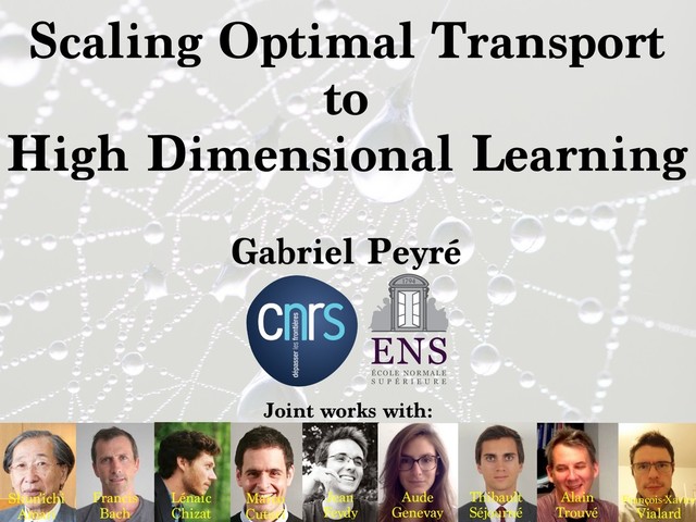 C O L E N O R M A L E S U P É R I E U R E RESEARCH UNIVERSITY PARIS Joint works with: Francis Bach François-Xavier Vialard Jean Feydy Thibault Séjourné Lénaic Chizat Aude Genevay Marco Cuturi Alain Trouvé Shun'ichi Amari