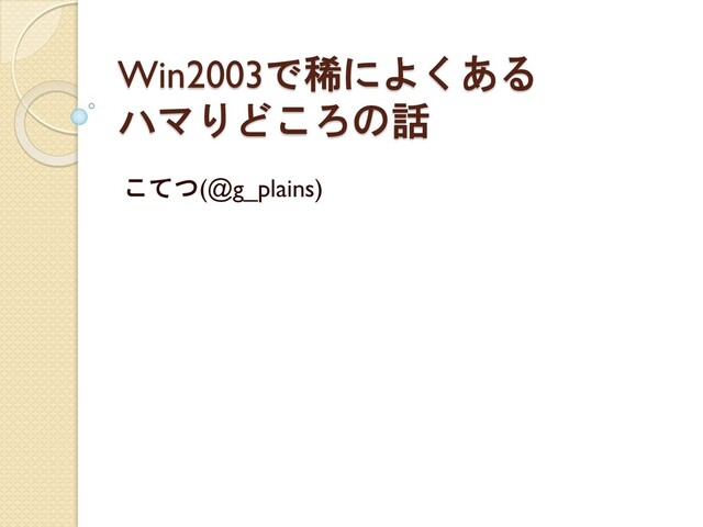 Win2003で稀によくある ハマりどころの話 こてつ(@g_plains)