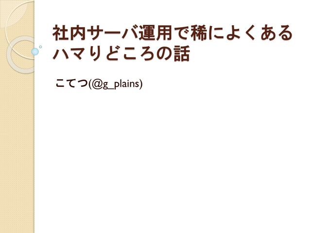 社内サーバ運用で稀によくある ハマりどころの話 こてつ(@g_plains)