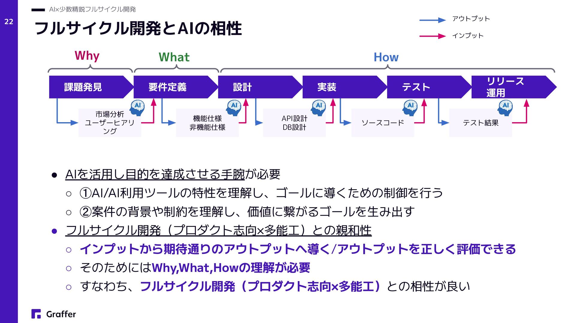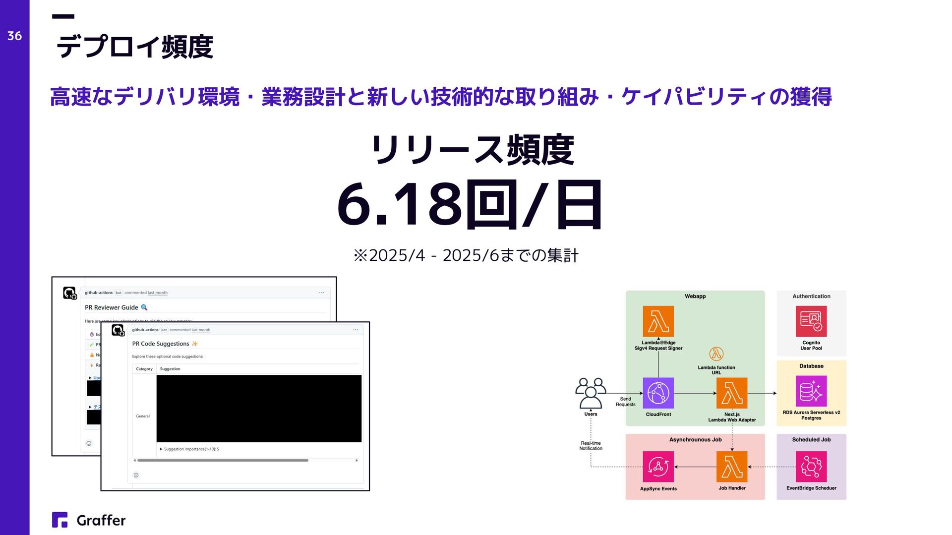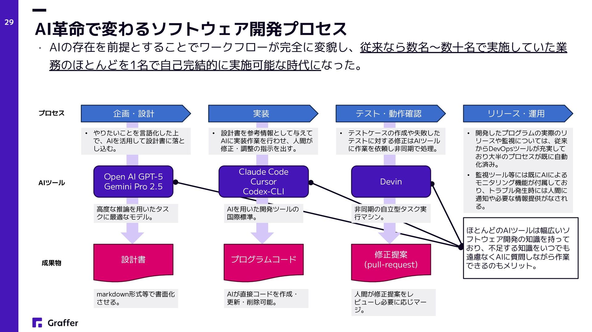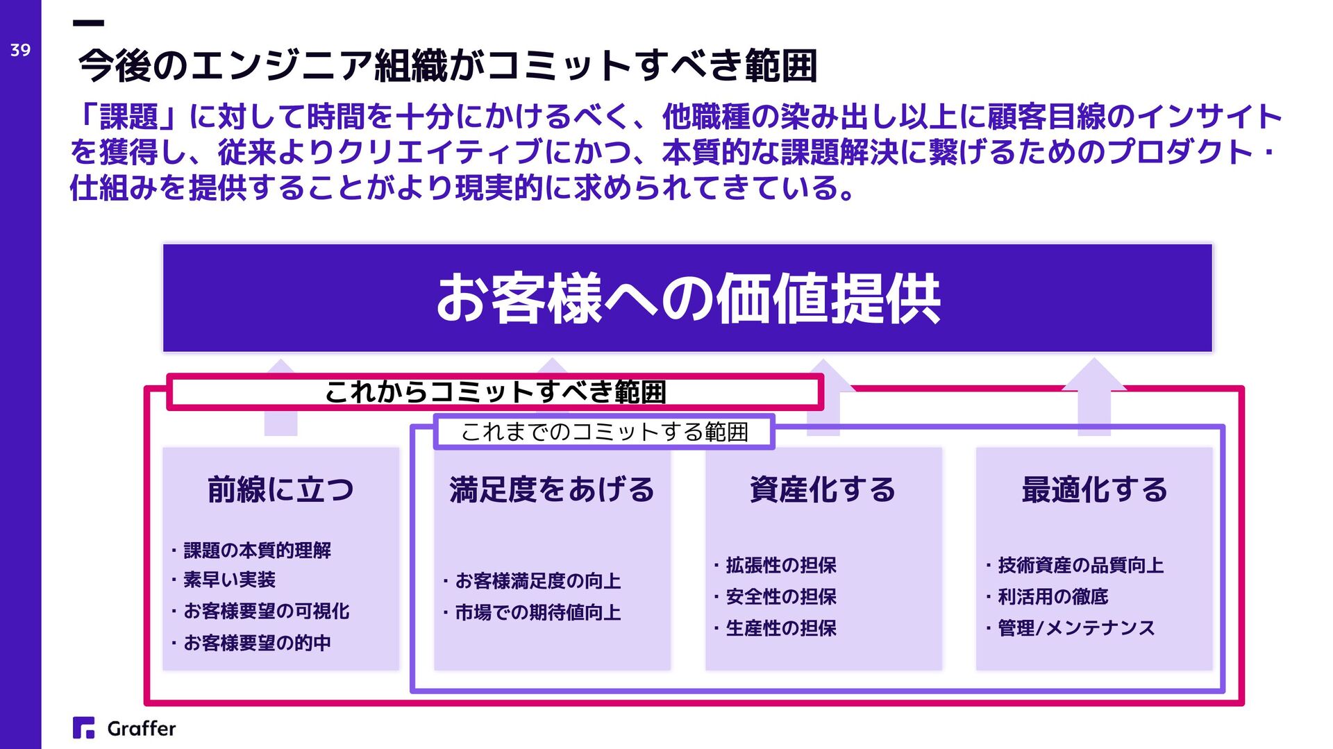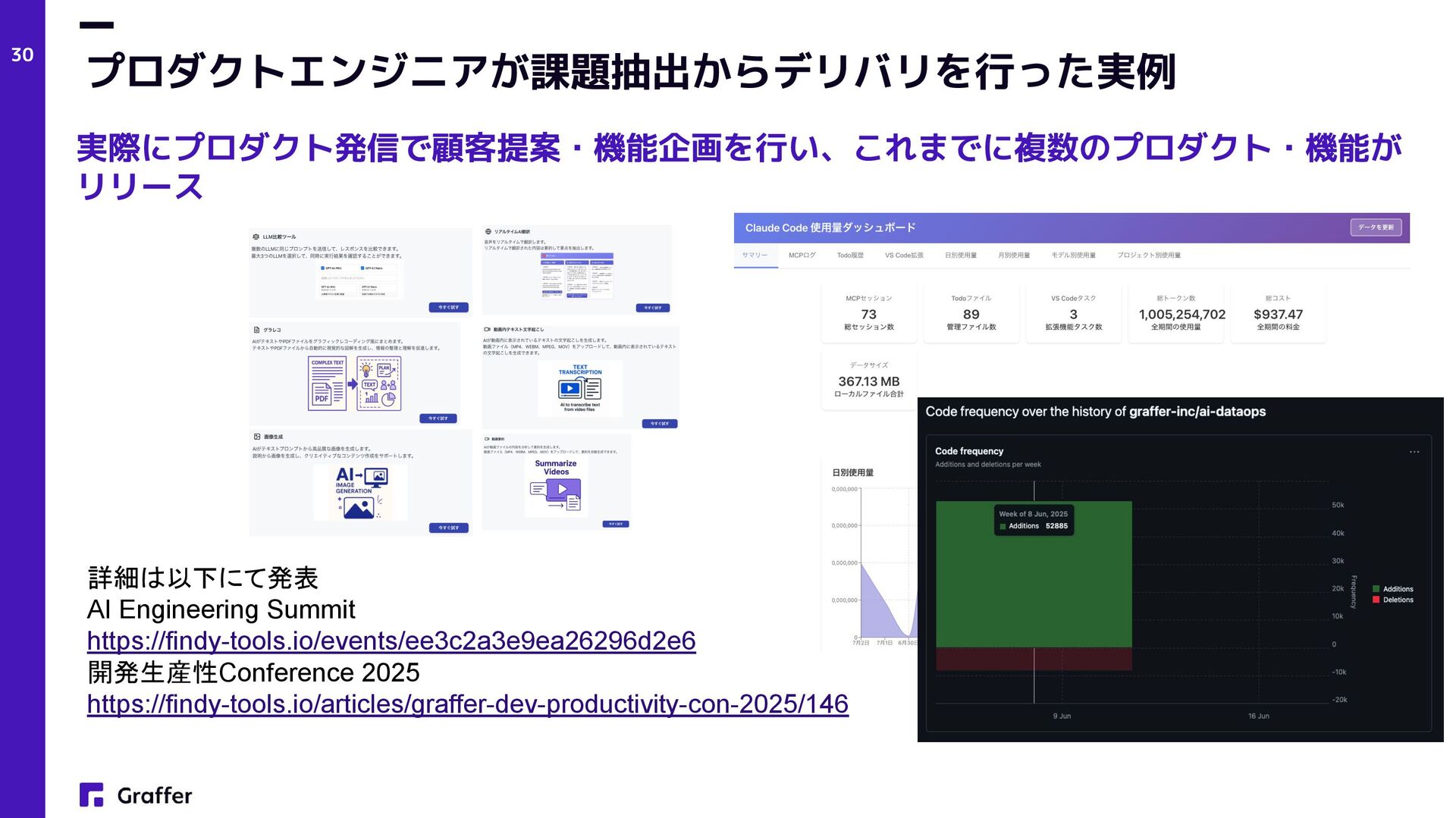 Netflix — Operate What You Build(Netflix Technology Blog, 2018) • プロダクトエンジニア • Product engineers (Sherif Mansour: Atlassian, Product Manager, 2018) • Product and Platform Engineers(Lee Robinson: Vercel, VP of Product, 2023) • グラファーは創業当初(2017年)からこのアプローチでプロダクト開発をスタート • 結果的に多数の複数のプロダクトをリリースし、現在でも日々成長中 プロダクト志向×多能工 AI×少数精鋭フルサイクル開発