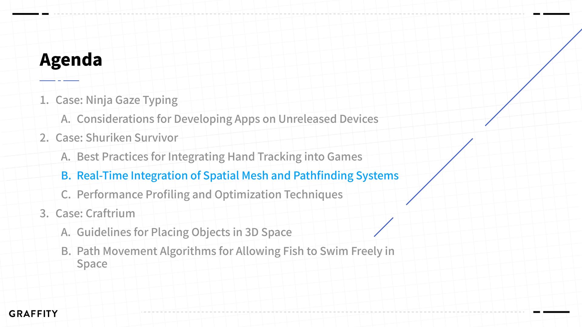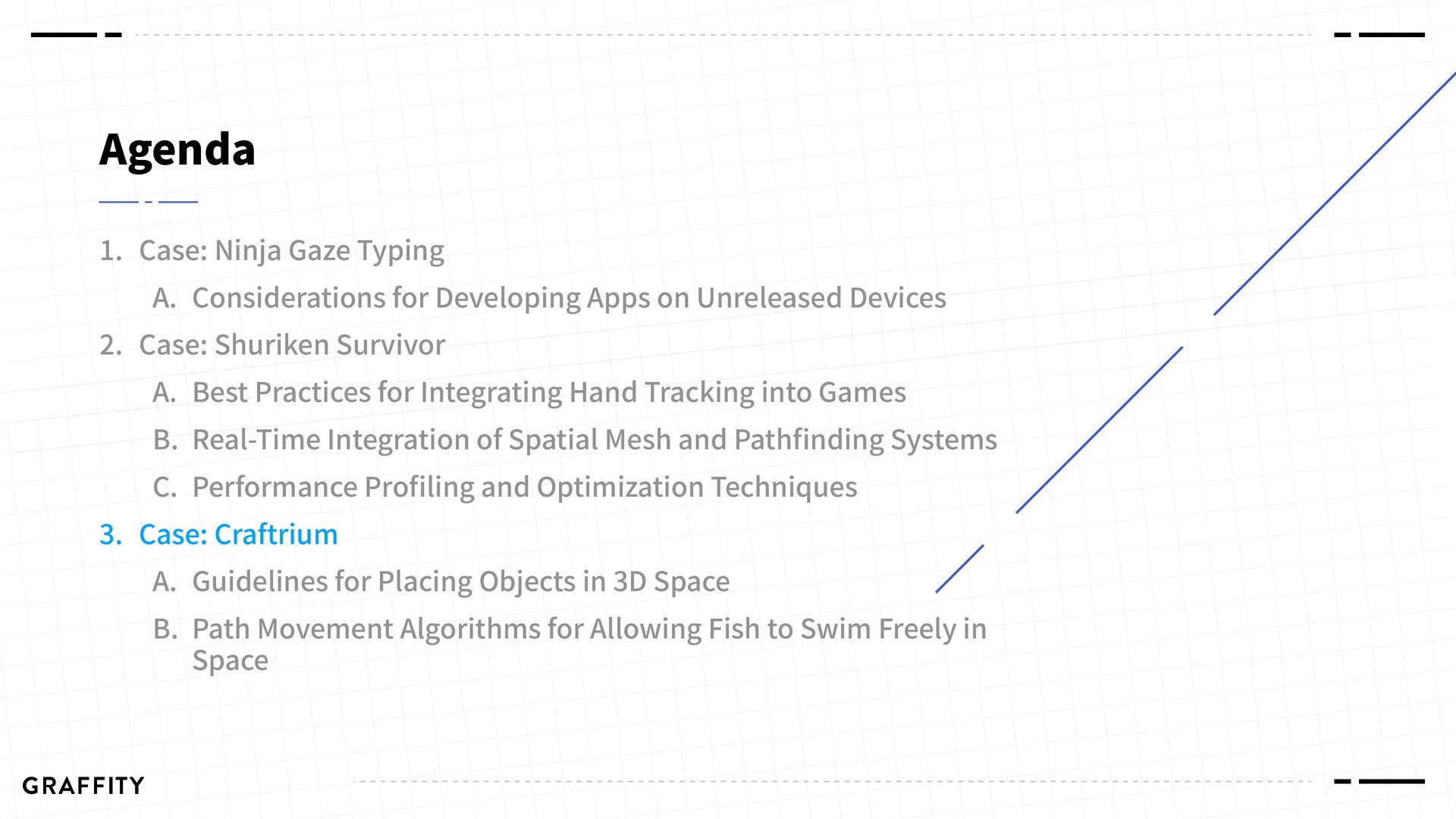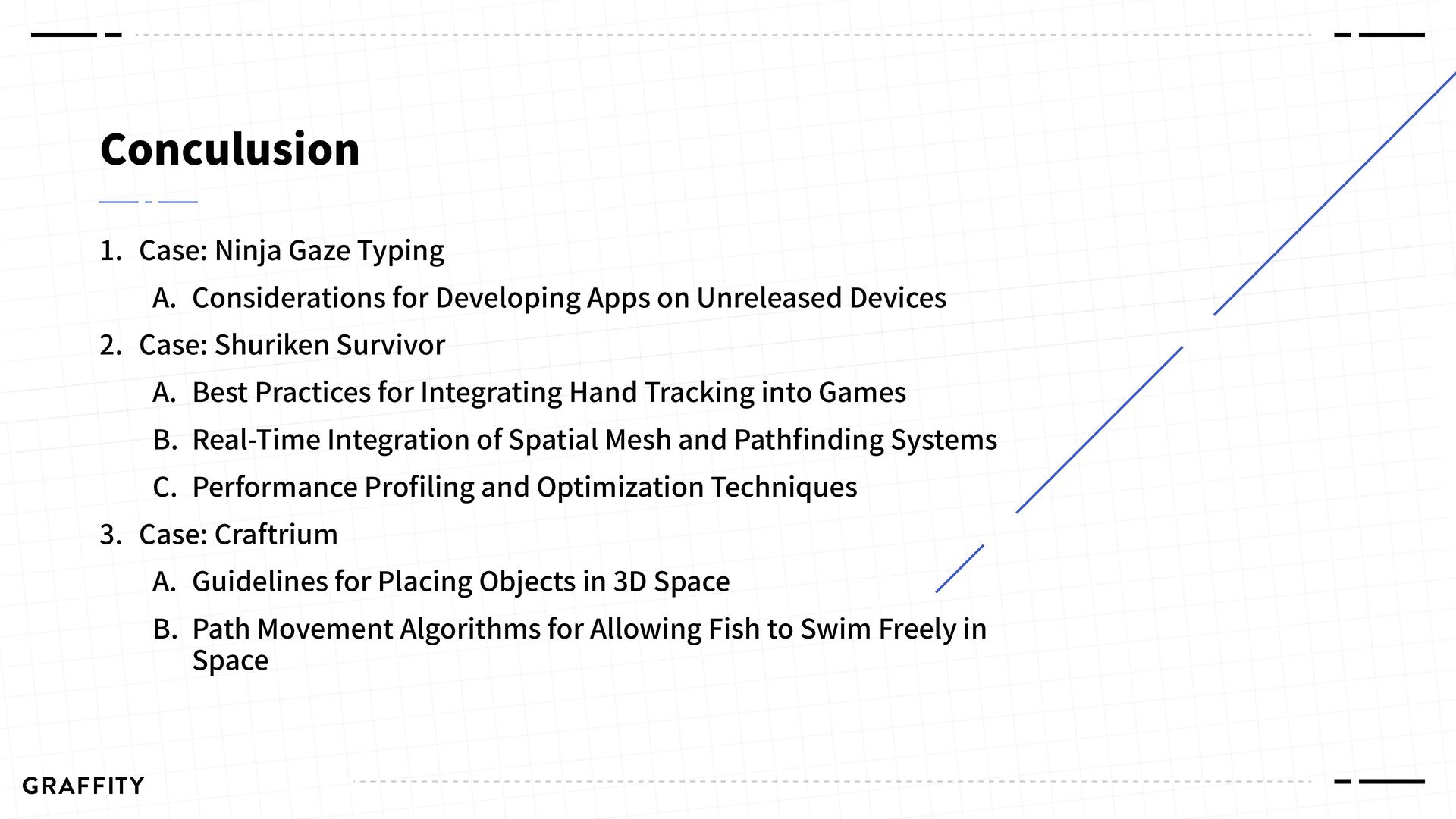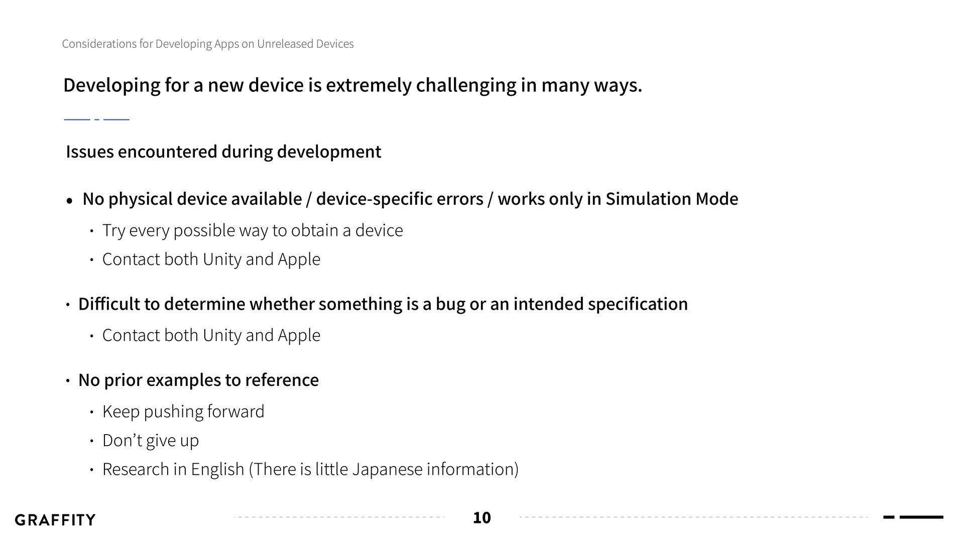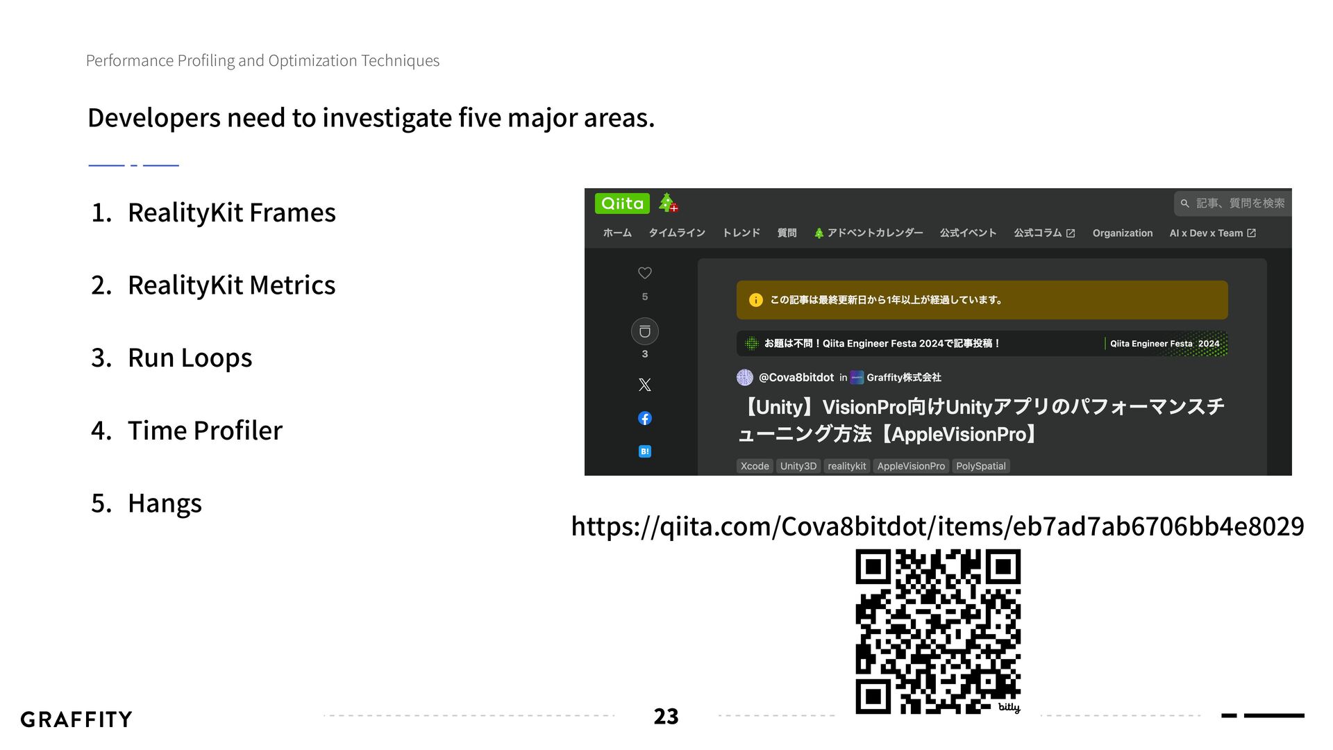 ffi ty has consistently delivered spatial entertainment. • Released two smartphone AR titles and two spatial games for Apple Vision Pro. • Most recently, we released the Apple Vision Pro spatial game “Shuriken Survivor.” • We operate Gra ffi ty AR Studio, which supports new B2C businesses utilizing AR, with numerous achievements collaborating with major clients. • Planned and developed the smartphone AR game “LOST ANIMAL PLANET” with NTT QONOQ. • We also run Gra ff i ty Spatial Lab, which supports planning and development of Apple Vision Pro applications. • Planned and developed the spatial video experience “Ploom Dive” for Ploom Shop, operated under the leadership of JT. • In addition, we have developed over 10 spatial applications to date. Spatial Game 「Gra ff i ty AR Studio」 「Gra ff i ty Spatial Lab」