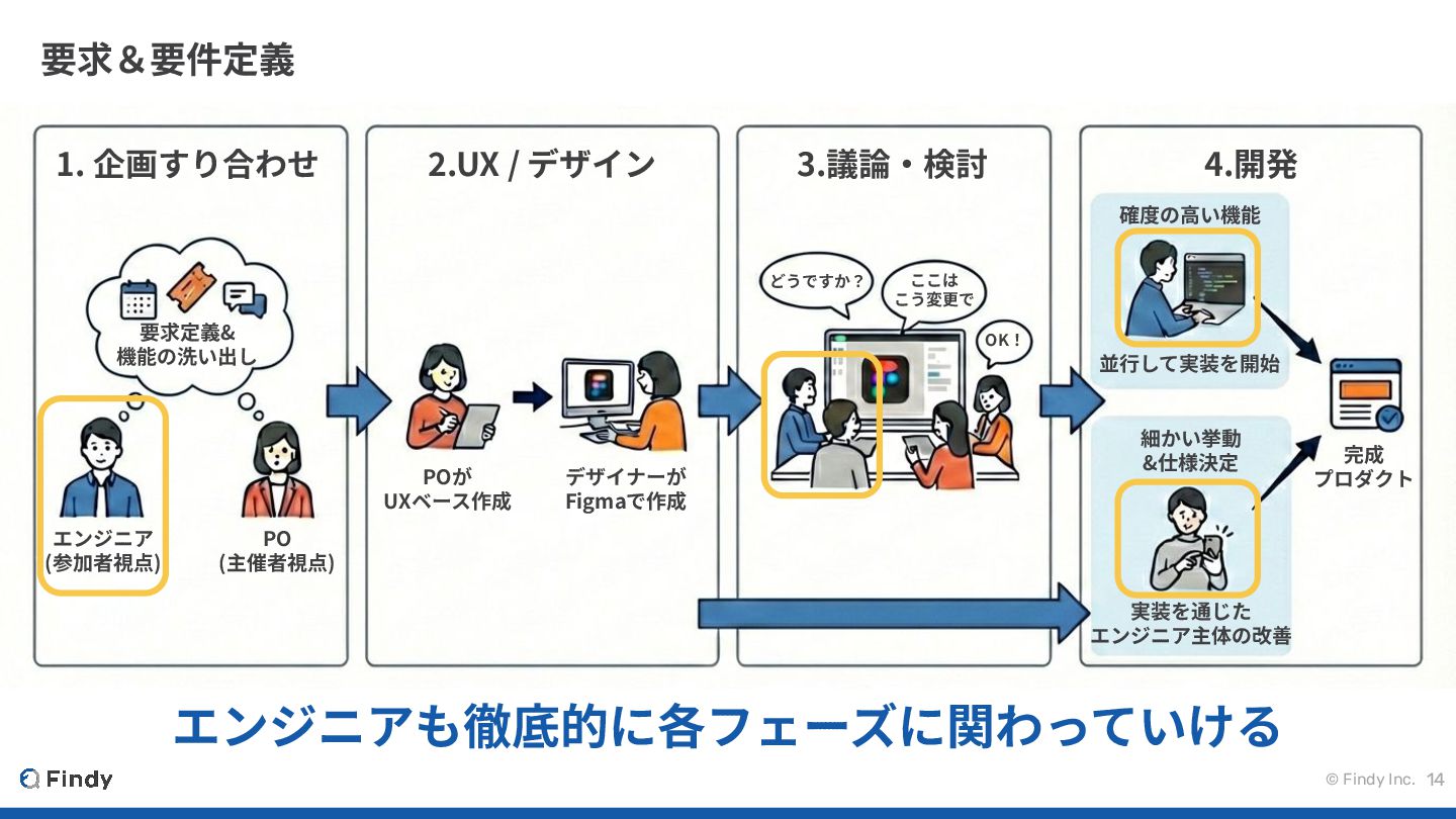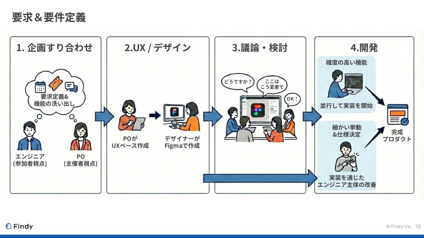 © Findy Inc. 13 要求&要件定義 1. 企画すり合わせ 2.UX / デザイン