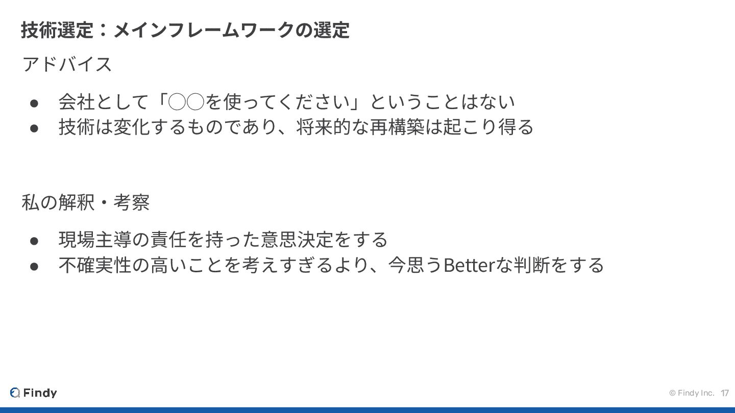© Findy Inc. 16 技術選定:メインフレームワークの選定