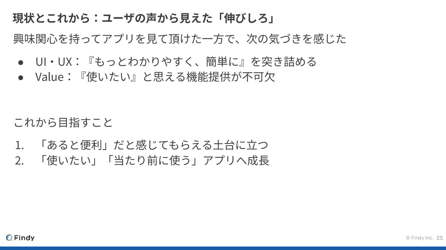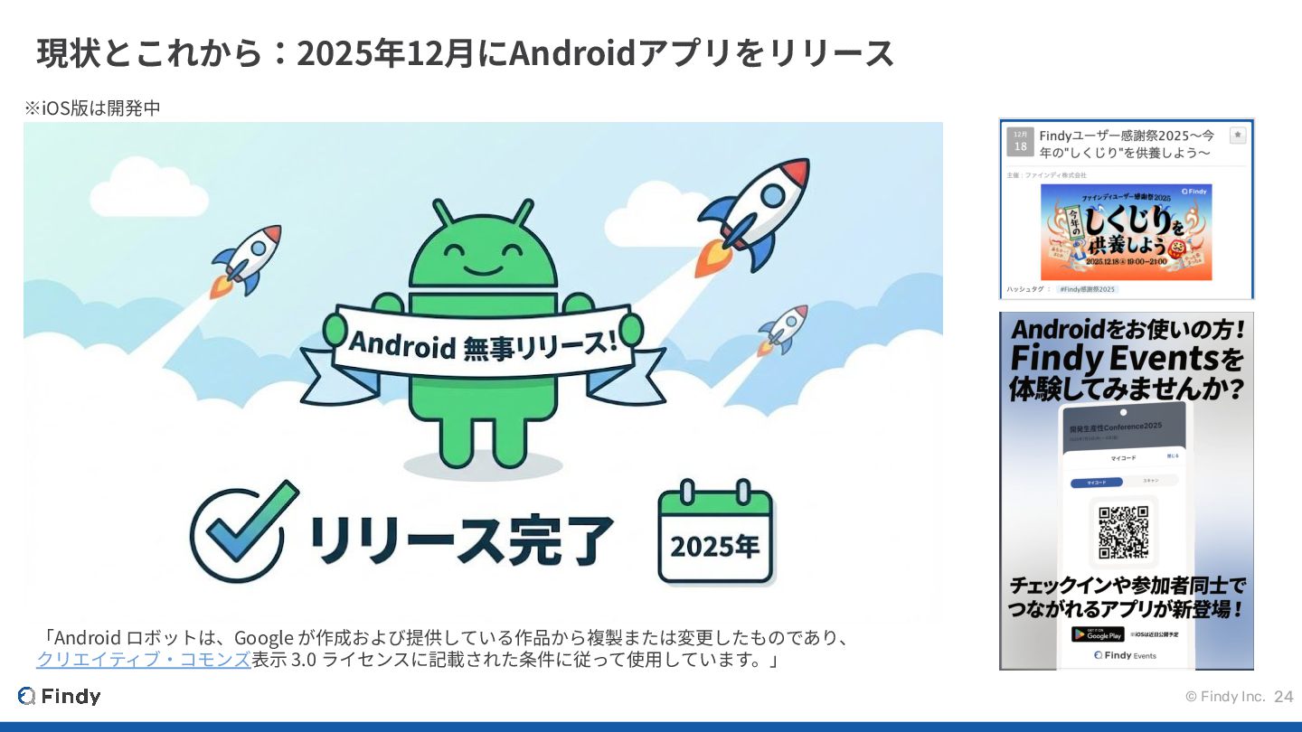 © Findy Inc. 24 現状とこれから:2025年12⽉にAndroidアプリをリリース 「Android ロボットは、Google が作成および提供している作品から複製または変更したものであり、 クリエイティブ‧コモンズ表⽰ 3.0