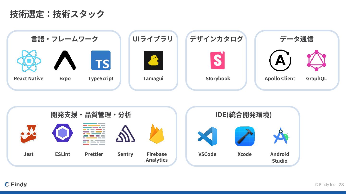 © Findy Inc. IDE(統合開発環境) VSCode Xcode Android Studio 28 技術選定:技術スタック