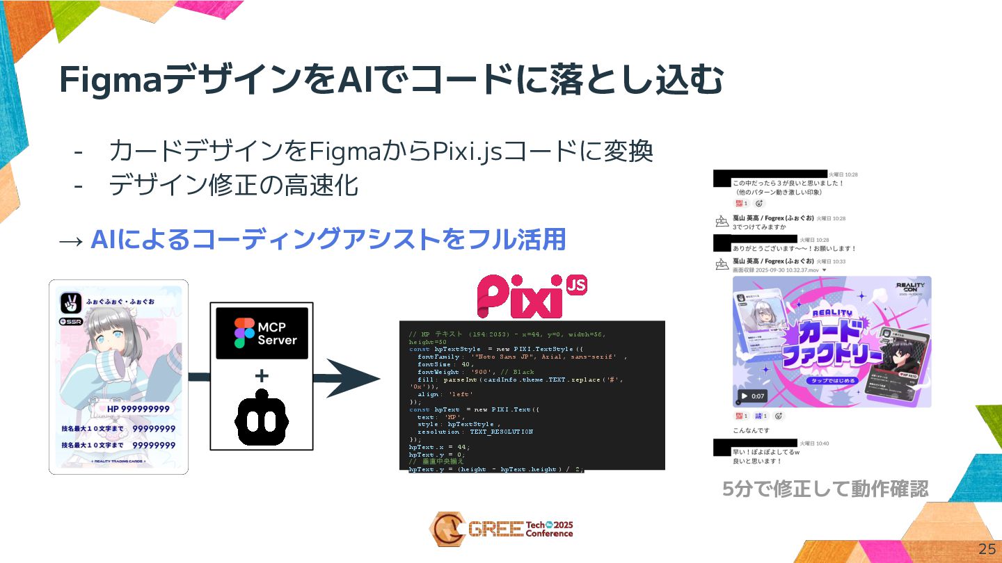 テキスト (194:2053) - x=44, y=0, width=56, height=50 const hpTextStyle = new PIXI.TextStyle ({ fontFamily : '"Noto Sans JP", Arial, sans-serif' , fontSize : 40, fontWeight : '900' , // Black fill: parseInt (cardInfo .theme .TEXT.replace ('#', '0x')), align : 'left' }); const hpText = new PIXI.Text({ text: 'HP', style : hpTextStyle , resolution : TEXT_RESOLUTION }); hpText .x = 44; hpText .y = 0; // 垂直中央揃え hpText .y = (height - hpText .height ) / 2; + 5分で修正して動作確認