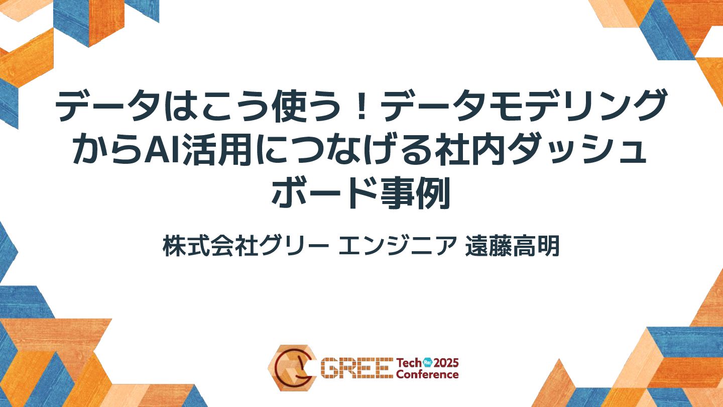 データはこう使う!データモデリング からAI活用につなげる社内ダッシュ ボード事例 株式会社グリー エンジニア 遠藤高明