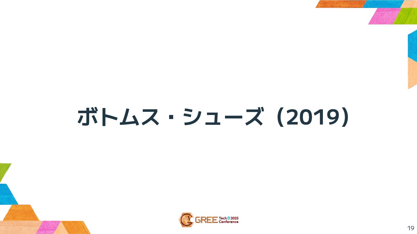 18. • はじめに • M体型の追加(2019) • 髪色自由化(2019) • ボトムス・シューズ(2019) • ガチャとセット服(2019)