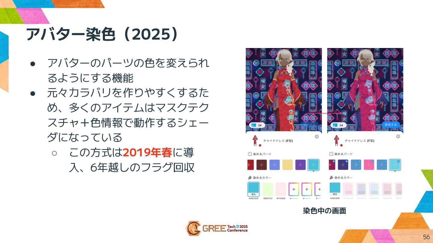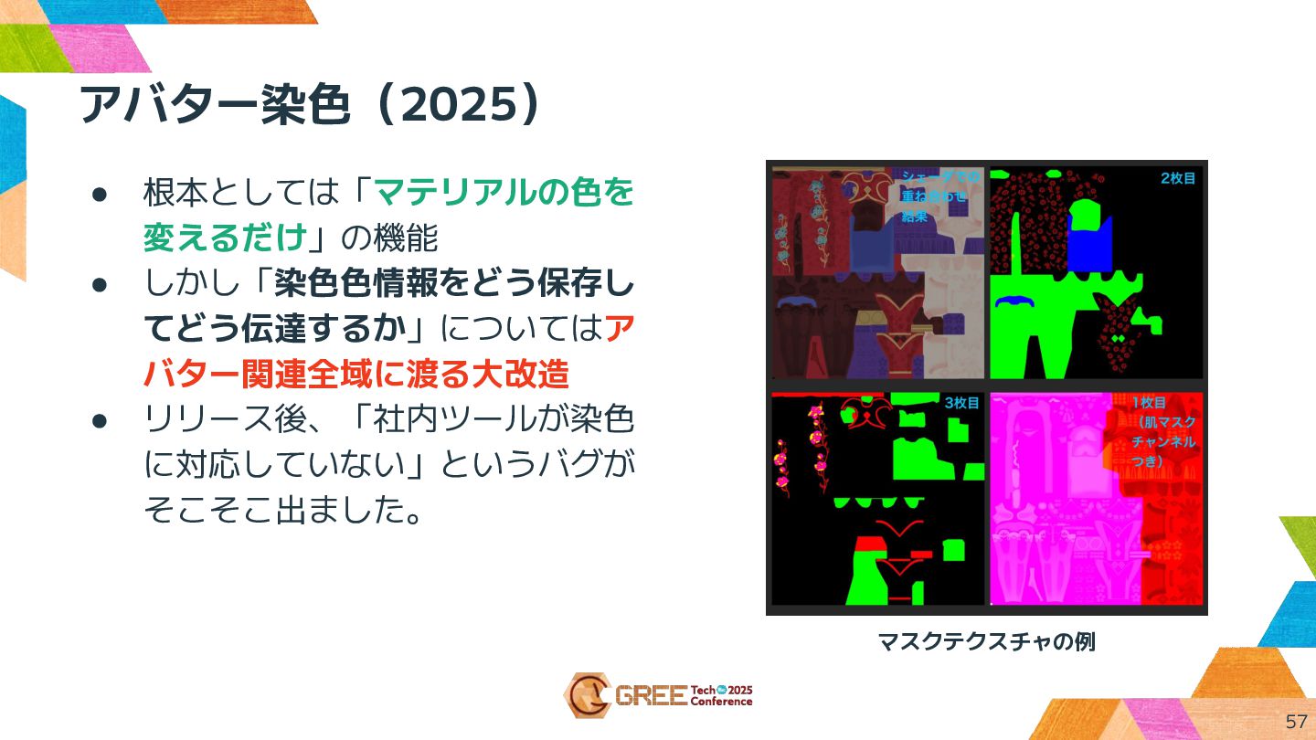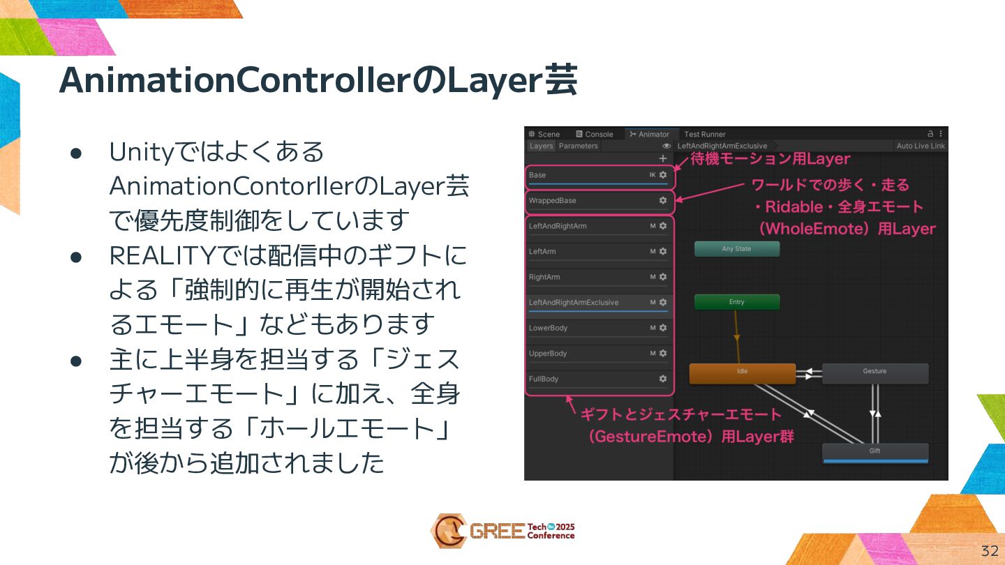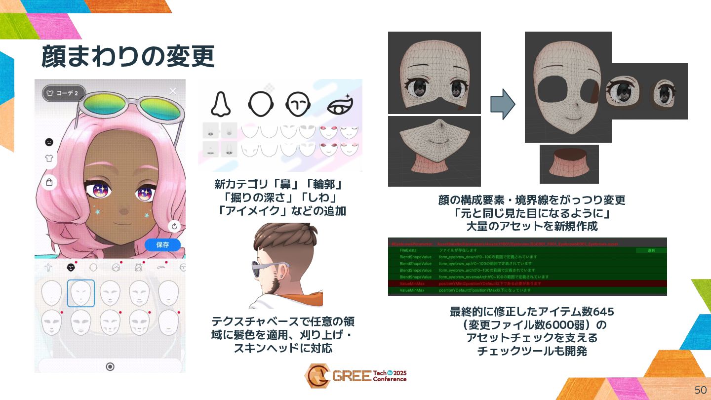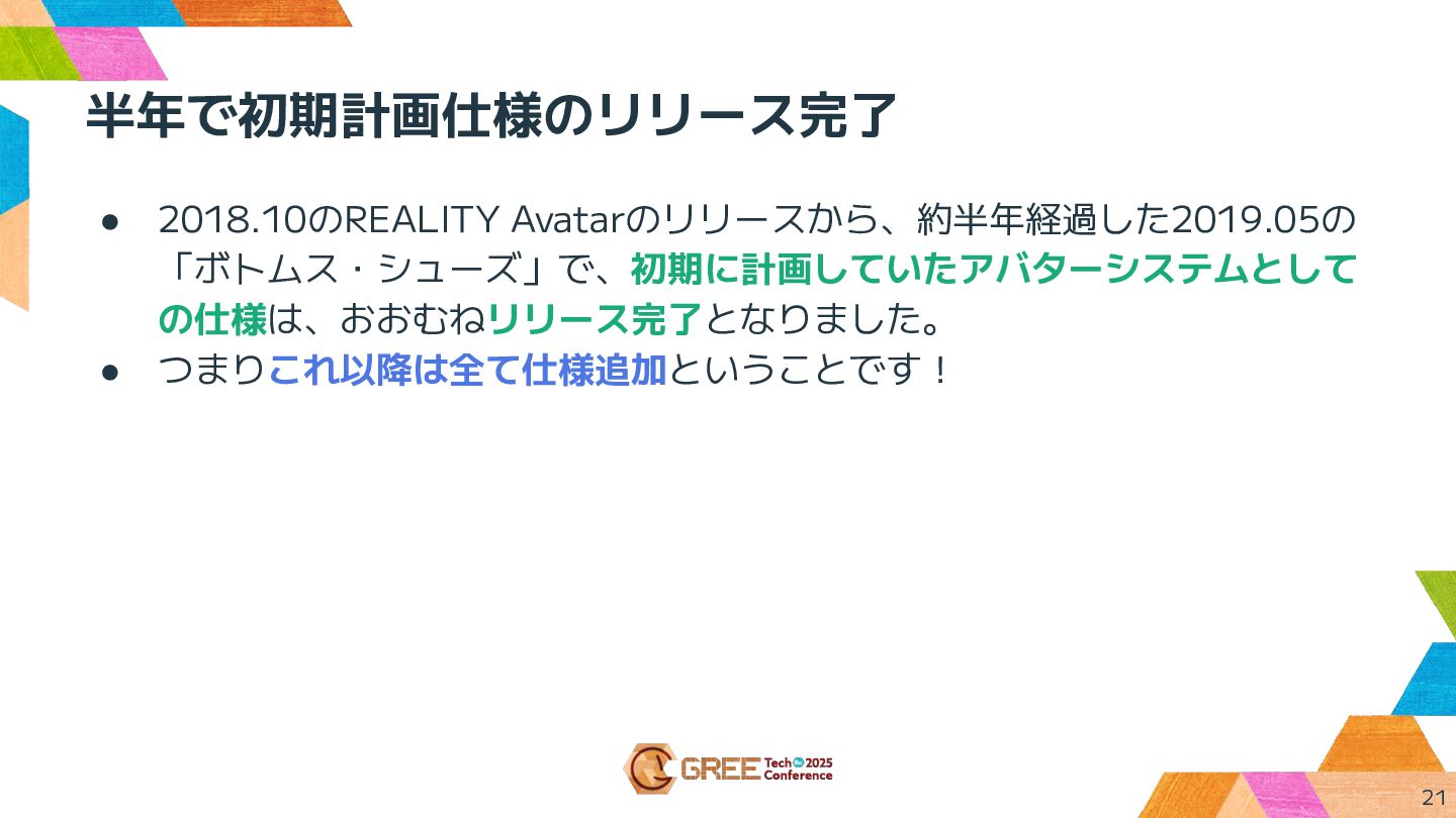 内部の仕組みを大幅に変えつつも 見た目の互換性を最大限維持 • Avatar 2.0のテクニカルな詳細に ついては2024年の発表を参照 ◦ “なりたい自分“をアップデート! 「REALITY Avatar 2.0」の開発秘話 - GREE Tech Conference 2024