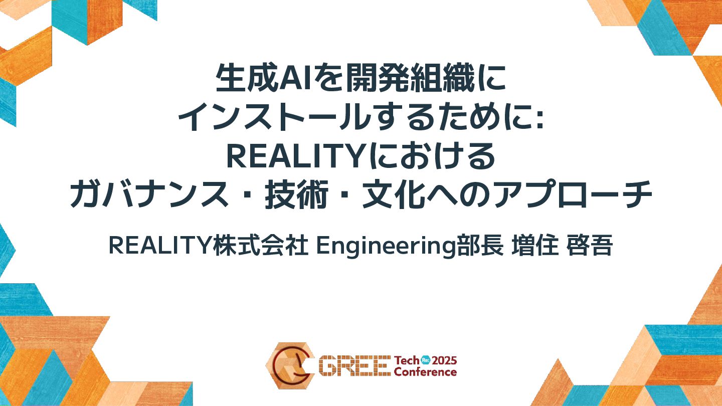 生成AIを開発組織に インストールするために: REALITYにおける ガバナンス・技術・文化へのアプローチ REALITY株式会社 Engineering部長 増住 啓吾
