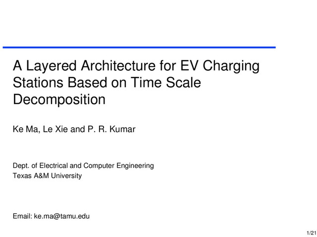 • No deadlines are missed If charging rate for each charger is big enough, then solution is Earliest Deadline First policy: Else: More general stochastic scheduling problem Charge all EVs with 1 time slot relative deadline Then charge ( − )/ EVs with 2 slots relative deadline