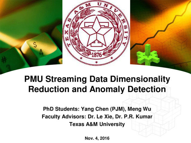 resolution of data problems for operations and analysis”, in Electric Power Group Webinar Series, Jan 2014. [2] S. Ghiocel, J. Chow, et al. "Phasor-measurement-based state estimation for synchrophasor data quality improvement and power transfer interface monitoring," IEEE Tran. Power Systems, 2014. [3] K. D. Jones, A. Pal, and J. S. Thorp, “Methodology for performing synchrophasor data conditioning and validation,” IEEE Tran. Power Systems, May 2015. [4] M. Wang, J. Chow, P. Gao, X. Jiang, Y. Xia, S. Ghiocel, B. Fardanesh, G. Stefopolous, Y. Kokai, N. Saito, and M. Razanousky, “A low-rank matrix approach for the analysis of large amounts of power system synchrophasor data,” in System Sciences (HICSS), 2015 48th Hawaii International Conference on, Jan 2015, pp. 2637–2644. [5] California ISO, “Five year synchrophasor plan,” California ISO, Tech. Rep., Nov 2011. [6] L. Xie, Y. Chen, and P. R. Kumar, “Dimensionality Reduction of Synchrophasor Data for Early Event Detection: Linearized Analysis,” IEEE Tran. Power Systems, 2014. [7] M. Wu and L. Xie, “Online identification of bad synchrophasor measurements via spatio-temporal correlations,” 19th Power Systems Computation Conference, Genoa, Italy, 2016. 23