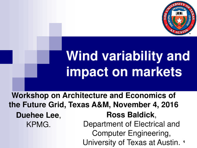 and Economics of the Future Grid, Texas A&M, November 4, 2016 Duehee Lee, KPMG. Ross Baldick, Department of Electrical and Computer Engineering, University of Texas at Austin.