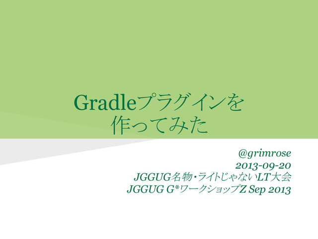 Gradleプラグインを 作ってみた @grimrose 2013-09-20 JGGUG名物・ライトじゃないLT大会 JGGUG G*ワークショップZ Sep 2013