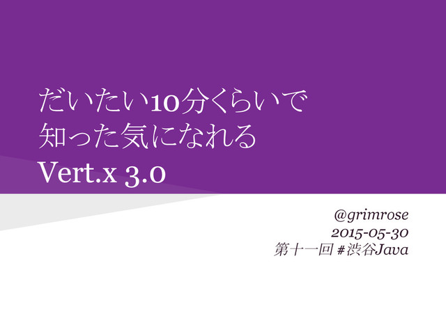 だいたい10分くらいで 知った気になれる Vert.x 3.0 @grimrose 2015-05-30 第十一回 #渋谷Java