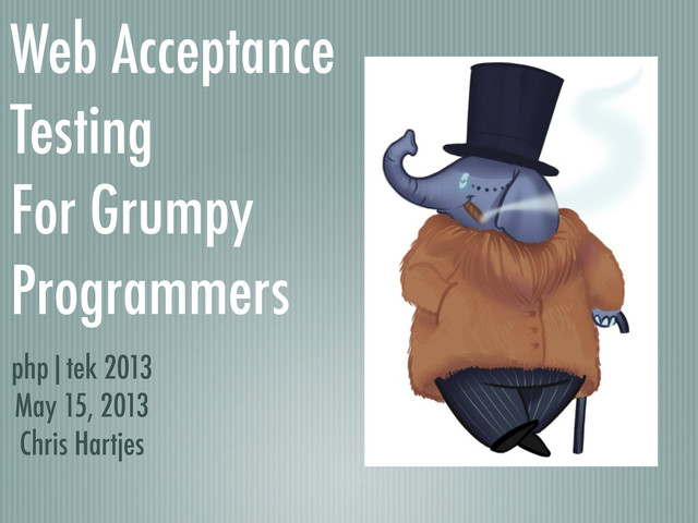 Web Acceptance Testing For Grumpy Programmers php|tek 2013 May 15,
