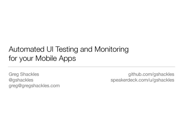 Automated UI Testing and Monitoring for your Mobile Apps Greg