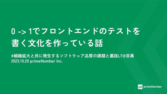 0 -> 1でフロントエンドのテストを 書く文化を作っている話 #組織拡大と共に発生するソフトウェア品質の課題と裏話LT@目黒 2023.10.20 primeNumber Inc.
