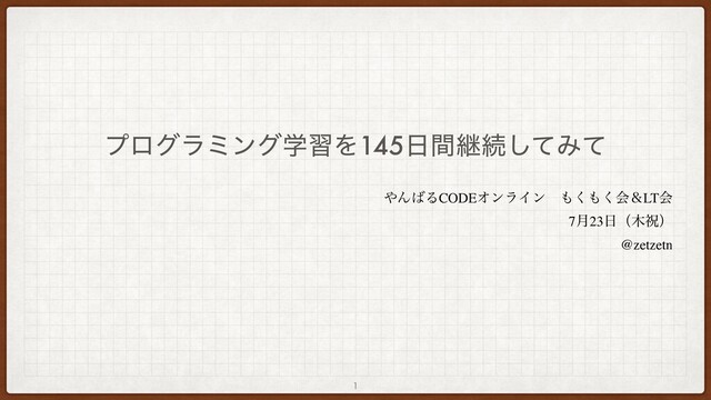 ϓϩάϥϛϯάֶशΛ145ؒܧଓͯ͠Έͯ ΜΔCODEΦϯϥΠϯɹ͘͘ձˍLTձ 7݄23ʢॕʣ @zetzetn 1